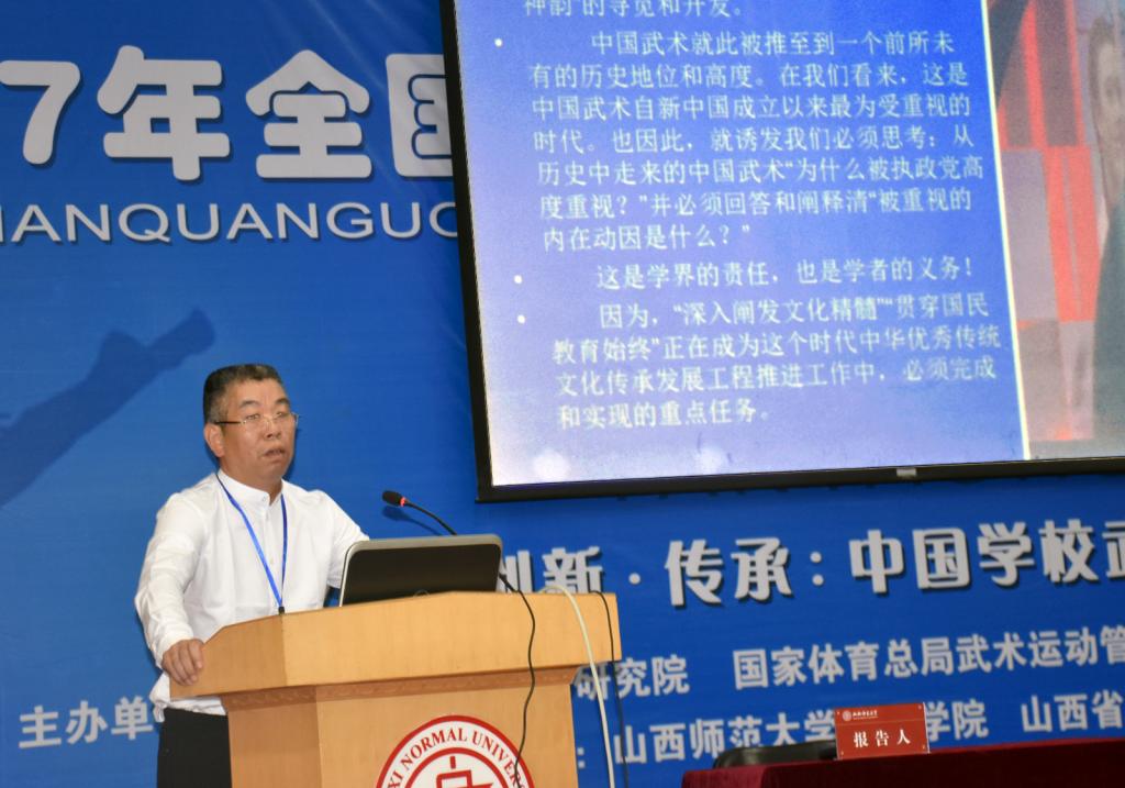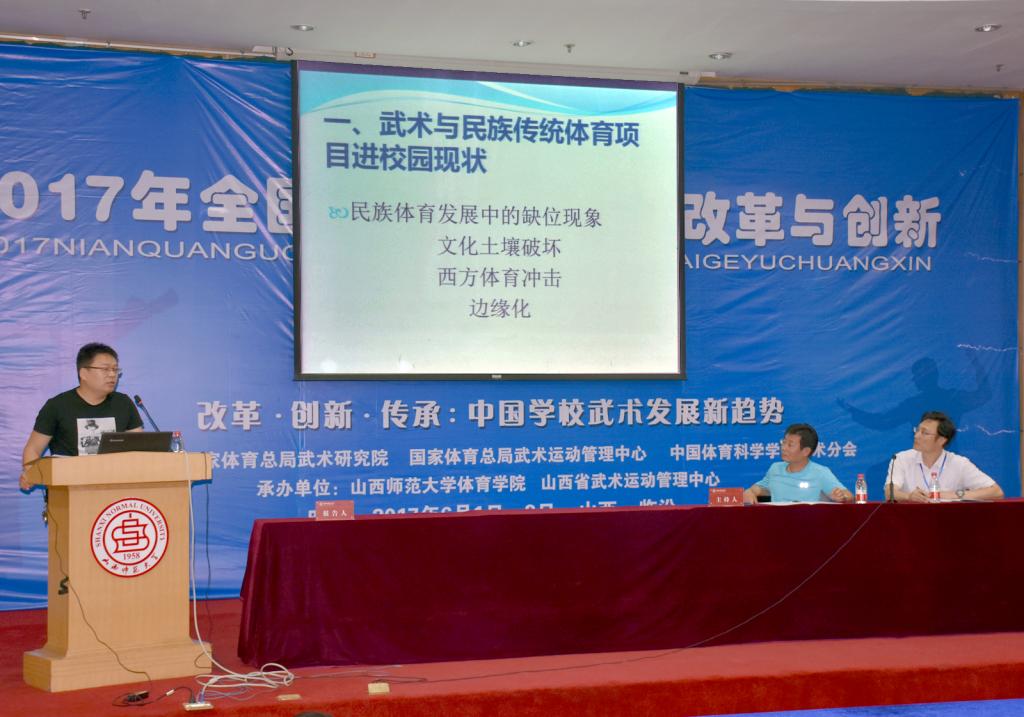 6月1日至3日,由国家体育总局武术研究院、国家体育总局武术运动管理中心、中国体育科学学会武术分会主办,公司太阳集团tcy8722和山西省武术运动管理中心承办的2017年全国公司武术教育改革与创新研讨会在公司召开。董事长卫建国、国家体育总局武术研究院研发部副主任王立峰、全国公司体育联盟(中华武术)秘书长、上海太阳集团tcy8722武术公司经理戴国斌、山西省武术运动管理中心主任张军平、山西省体育局教科处处长侯冰、临汾市文化局副局长卫康忠、体院领导等出席大会开幕式。来自全国各地高校、中学的80余名代表参加了本次会议。