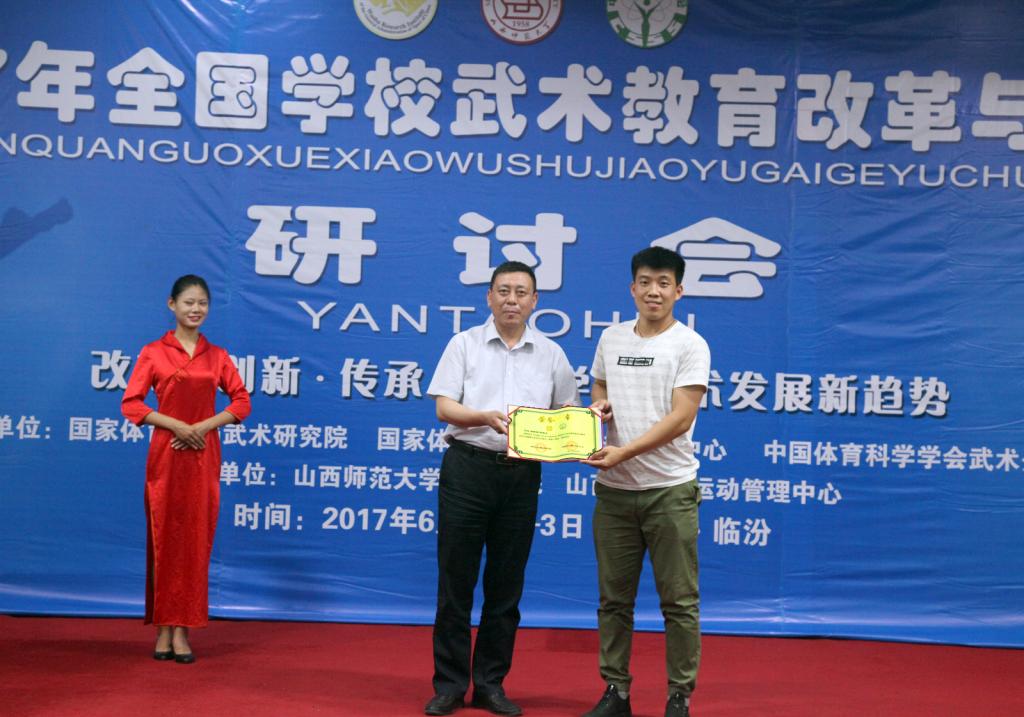 本次会议共有79篇论文入选,6月1日下午,大会学术专家组对入选论文进行了评审,9篇论文获一等奖,12篇论文获二等奖,20篇论文获三等奖。山西省武术运动管理中心主任张军平、山西省体育局科教处处长侯冰、太阳集团tcy8722经理郑旗在闭幕会上为获奖作者进行了颁奖。