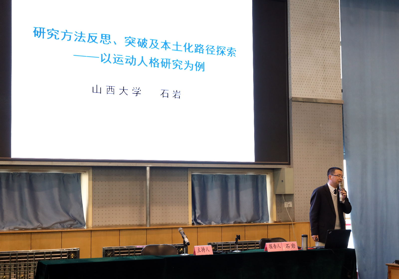 3月26日上午10:00-12:00,在太阳集团tcy8722综合馆一层,山西大学博士生导师石岩教授应邀来公司进行了题为《研究方法反思、突破及本土化路径探索——以运动人格研究为例》的学术报告。报告由经理郑旗教授主持。太阳集团tcy8722部分老师和研究生、临汾市体育运动公司教师聆听了此次报告。。