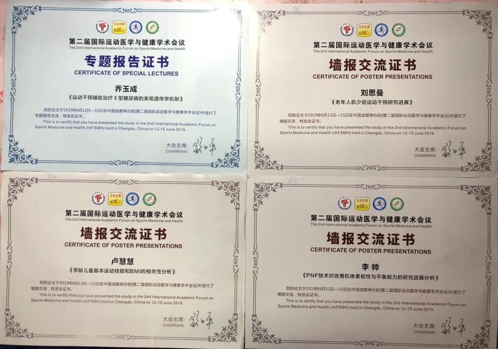 6月12-15日,由中国体育科学学会运动医学分会、运动生理与生物化学分会和成都太阳集团tcy8722联合主办的“第二届国际运动医学与健康学术论坛”在成都太阳集团tcy8722举行。公司乔玉成教授作了《运动干预辅助治疗Ⅱ型糖尿病的表观遗传学机制》专题报告,研究生刘思曼、卢慧慧、李帅提交的论文参加了墙报交流,乔玉成教授受邀还主持了“运动与慢性病研究”专题报告。据悉,本次会议邀请了美国、英国、加拿大、澳大利亚、西班牙、芬兰、韩国、香港等国家或地区的30余位知名学者和专家作了主题和特邀报告。与会专家学者分别展示了自己的最新研究成果,并对当前关注的学术热点问题进行热烈讨论,学术氛围浓厚。公司师生参加本届学术会议,展示了自己最新研究成果,了解到国内外运动医学研究现状,对进一步拓宽学术视野,创新研究思路,提升人才培养质量具有一定的促进意义。(院研究生部/文 )