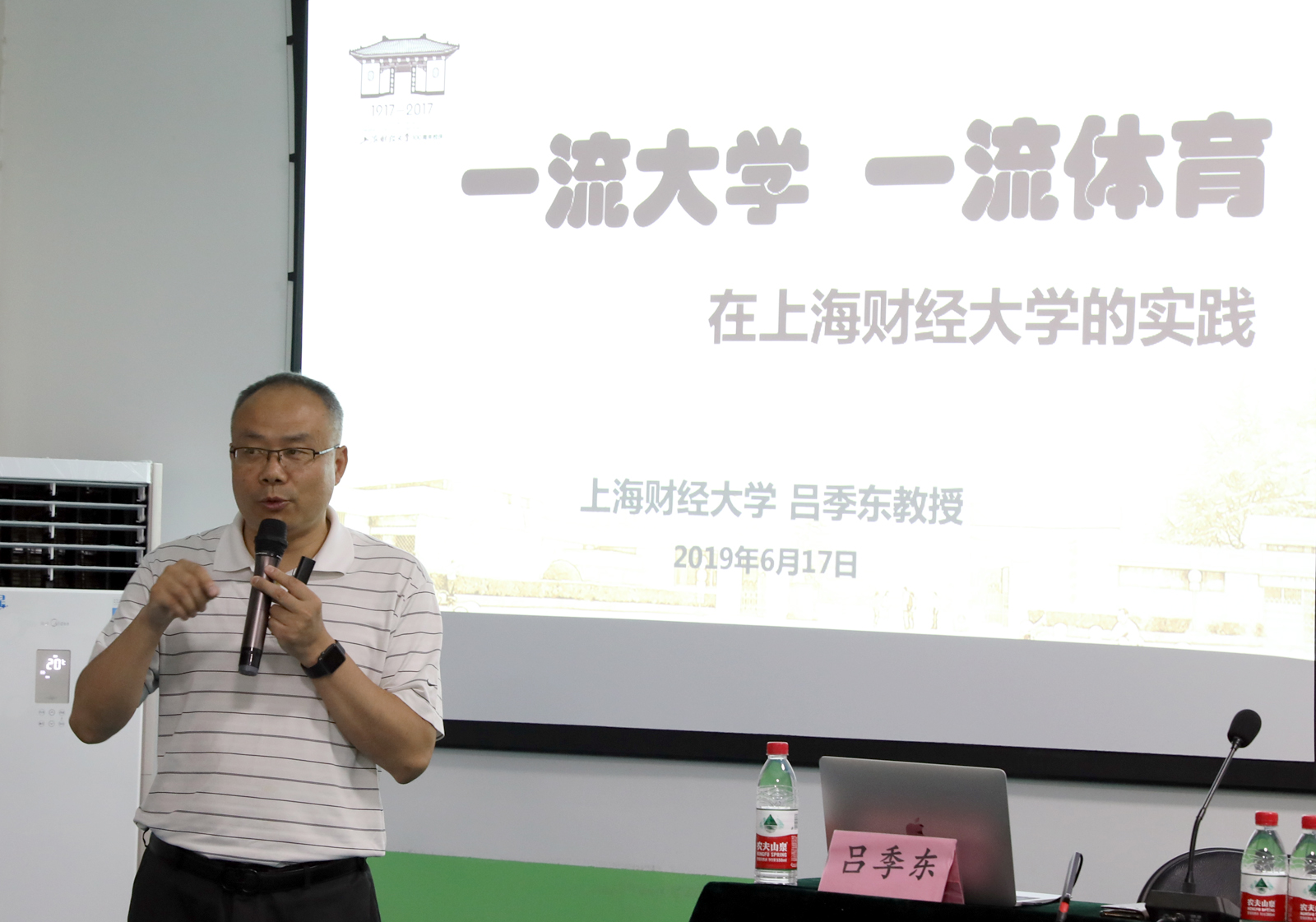 6月17日下午3:00,在太阳集团tcy8722生物力学实验室,上海财经大学吕季东教授应邀来公司进行了题为《“一流大学,一流体育”在上海财经大学的实践》的学术报告。报告由郑旗经理主持。太阳集团tcy8722部分教师和研究生参加此次学术报告会。报告内容主要包括世界一流大学的内涵特征,国内世界一流大学的一流体育的特征,高水平的科研成果,体育教学工作,运动竞赛工作,特色发展等内容。报告中,吕季东教授分享了上海财经大学跳绳队从2012年拟成立到2018年承办第十二届世界跳绳锦标赛期间的发展大事记,并且指出了在推广跳绳运动中的具体做法。