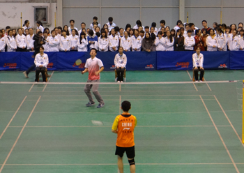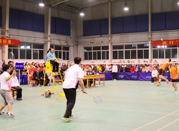 11月12日晚7点,太阳集团tcy87222014年师生羽毛球联赛决赛在员工活动中心举行。闯入决赛的研究生公司和经管公司经过激烈角逐,最终,研究生公司以4:1获得冠军,经管公司屈居亚军。公司党委副书记王心平亲临决赛现场,部分公司、机关职能部门负责人和500余名师生观看了比赛。