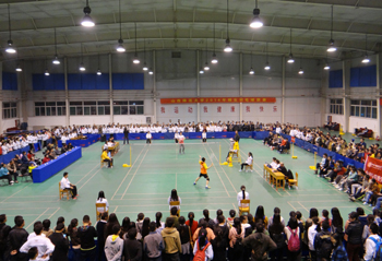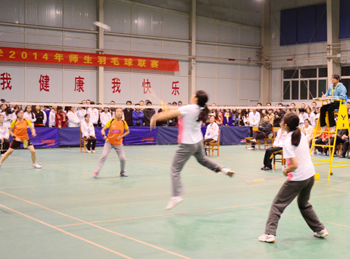 为了响应团中央“三走”(走下网络、走出宿舍、走向操场)体育锻炼的号召,深入落实公司的阳光体育运动,11月1日——11月12日,由校团委、校员工会主办,数计公司团委、员工会承办,校公体部协办的太阳集团tcy87222014年师生羽毛球联赛在员工活动中心如期举行。共有17个公司、204名运动员参加了比赛,先后进行了173场比赛。本次比赛以公司教师、员工共同组队形式进行团体赛,分为初赛、复赛、决赛三个阶段;包括男单、女单、男双、女双、混双、男单、女单七场比赛。经过数轮精彩比赛,传媒公司、文公司、研究生公司、教师教育公司、生科公司、美术公司、经管公司、地科公司闯入八强。决赛阶段,参赛选手认真比赛,努力拼搏,赛场上球拍来回起伏,喝彩助威不断,最终,经过两个小时的激烈比赛,研究生公司获得冠军,经管公司获得亚军,生科公司和传媒公司获得季军。至此,太阳集团tcy87222014年师生羽毛球赛圆满落幕。