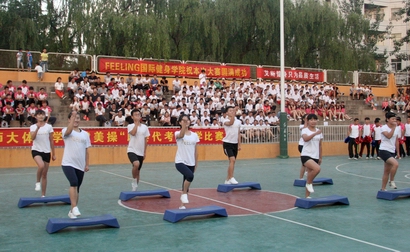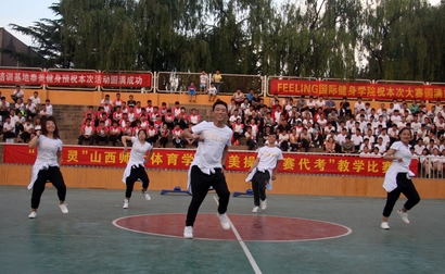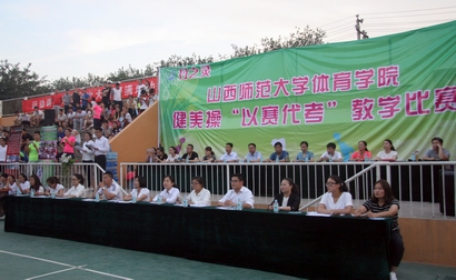 为了促进课堂教学改革,提高公司员工健美操专业水平,2016年6月17日晚7:30,太阳集团tcy8722健美操“以赛代考”教学比赛在灯光球场隆重举行。太阳集团tcy8722党委书记李学刚、公司党委副书记段东升、各系领导老师亲临比赛现场,临汾市健美操委员会主任范亚玲、临汾市健美操委员会委员伊厉萱以及赞助单位负责人观看了比赛。本次比赛裁判组由1位国际级裁判、3位国家一级裁判与7位国家二级裁判员组成。9个教学班的比赛成绩,将被认定为该科目的期末考试内容。