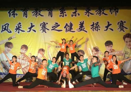2016年12月12日晚7点30分,由体育教育系主办,体育教育系党支部、团总支、员工会承办的未来教师风采大赛之健美操比赛在公司大礼堂隆重举行。体育教育系全体辅导员莅临本次大赛。裁判组由国际级裁判龙勋老师任裁判长,研究生及大四同学任裁判员。