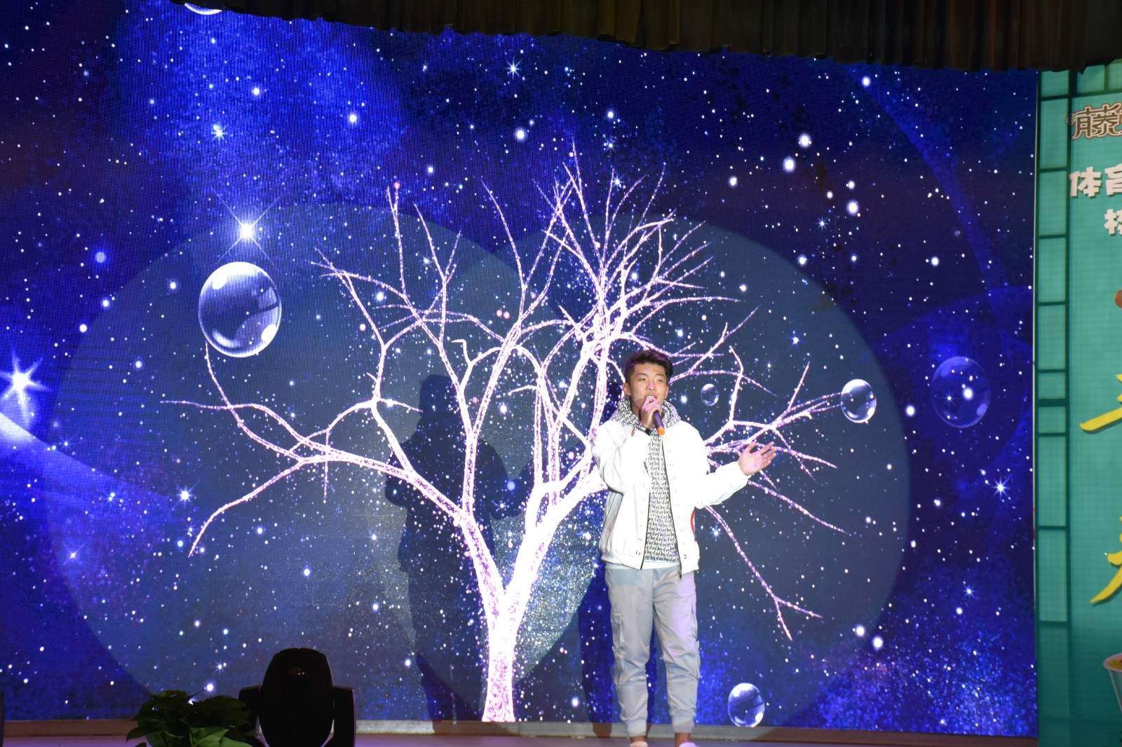 一曲《老男孩》大合唱正式拉开了本次大赛的帷幕,激起了现场每位观众的热情。选手自选歌曲虽然有不同的风格,但都展示出了他们强大的实力,也正是这种演唱实力和舞台表现力,将大赛一次次推向高潮。比赛期间,为加强兄弟院校的交流学习,特别邀请了山西体育职业公司与公司跳绳队带来了花样跳绳表演,文理公司舞蹈协会带来了舞蹈表演。经过激烈角逐,民族传统体育系1502班王军港获得大赛第一名,体育教育系1601班杨晶获得大赛第二名,体育教育系1502班张怡婷获得大赛第三名,运动训练系1703班李俊博获得最佳人气奖。最后,出席的领导老师为获奖选手颁奖并合影留念。