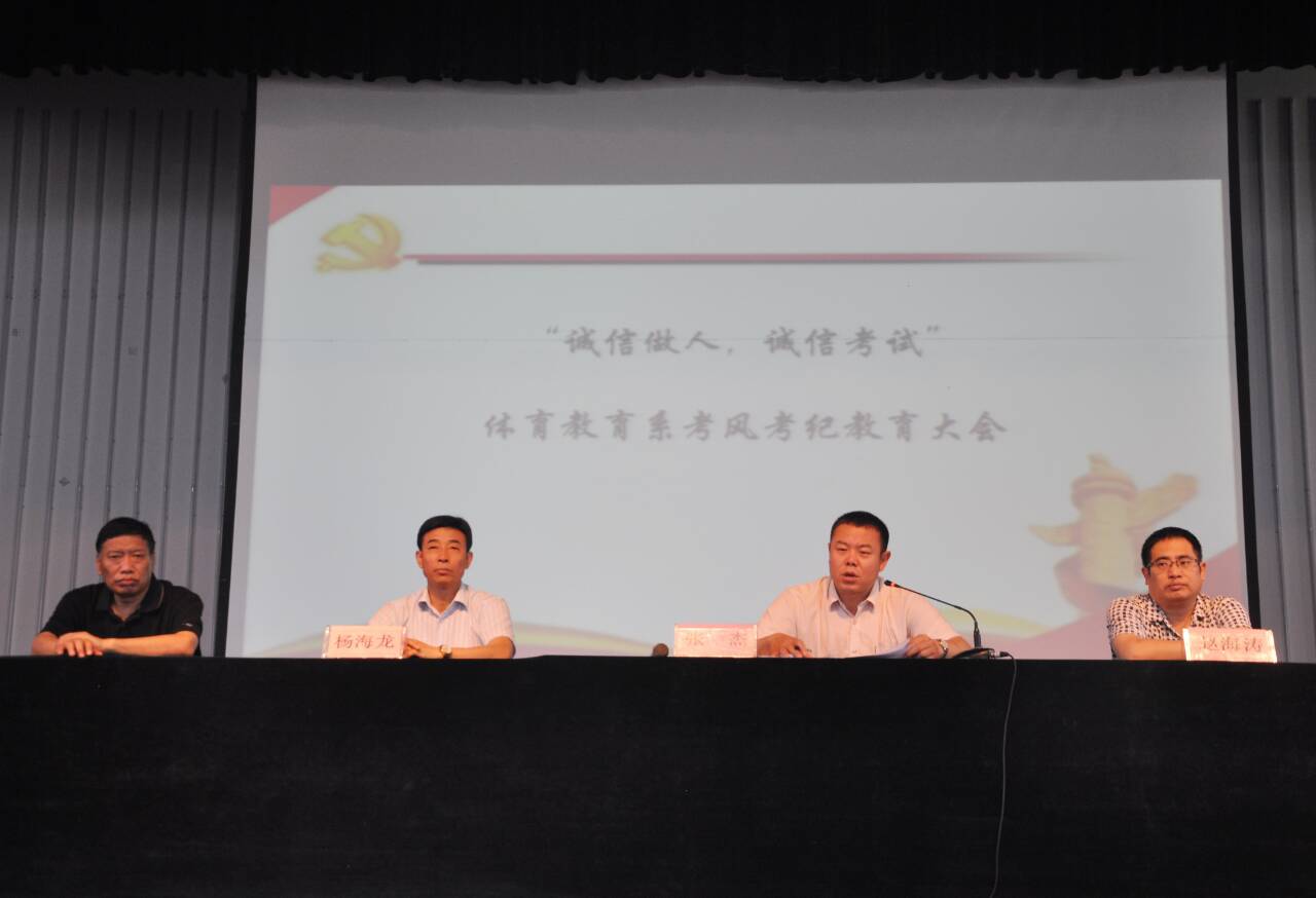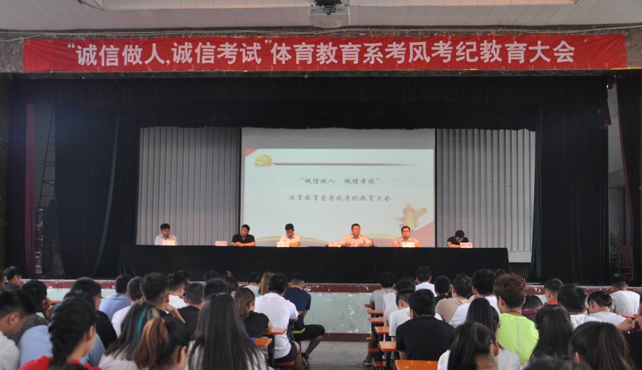 7月3日上午9点,“诚信做人,诚信考试”体育教育系考风考纪教育大会在大礼堂如期召开。系主任杨海龙,系副主任张杰以及各班辅导员参加了会议。大会由体育教育系副主任张杰主持。