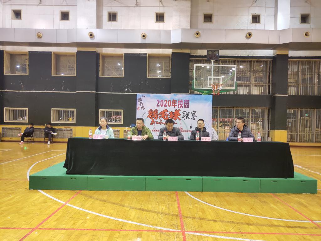 11月16日晚19:00,校园羽毛球联赛举行开幕式,公司党委副书记张大为、教务科科长冯瑞、社会体育系主任孟春雷、体育教育二系主任李向前、院团委副书记程祖浩、社会体育系副主任李俊明、体育教育二系副主任张学龙、大赛仲裁委员会总裁判长谢宏梅参加。院团委副书记程祖浩致开幕词,运动员和裁判员分别进行宣誓,随后,由公司羽毛球专项运动员为大家带来了一场精彩的表演赛。