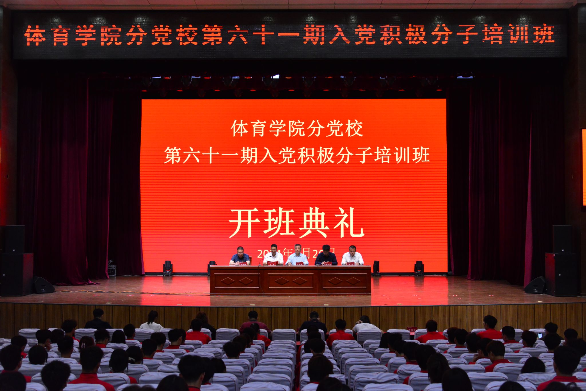 4月26日-5月7日,太阳集团tcy8722举办了第61期入党积极分子培训班。26日晚,培训班开班典礼在科学会堂一层报告厅举行。公司党委书记、分党校董事长卫建平,公司党委副书记、经理王彤,公司党委副书记张大为,公司党委委员、副经理、运动训练系党支部书记李向前,公司党委委员、体育教育系党支部书记张杰,社会体育系党支部书记李俊明,运动训练系员工党支部书记卫玲玲,研究生第二党支部书记李瑞琴及129名入党积极分子参加了开班典礼,开班典礼由公司党委副书记张大为主持。