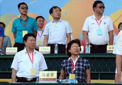 副董事长、校体育代表团团长闫桂琴在开幕式主席台上 |