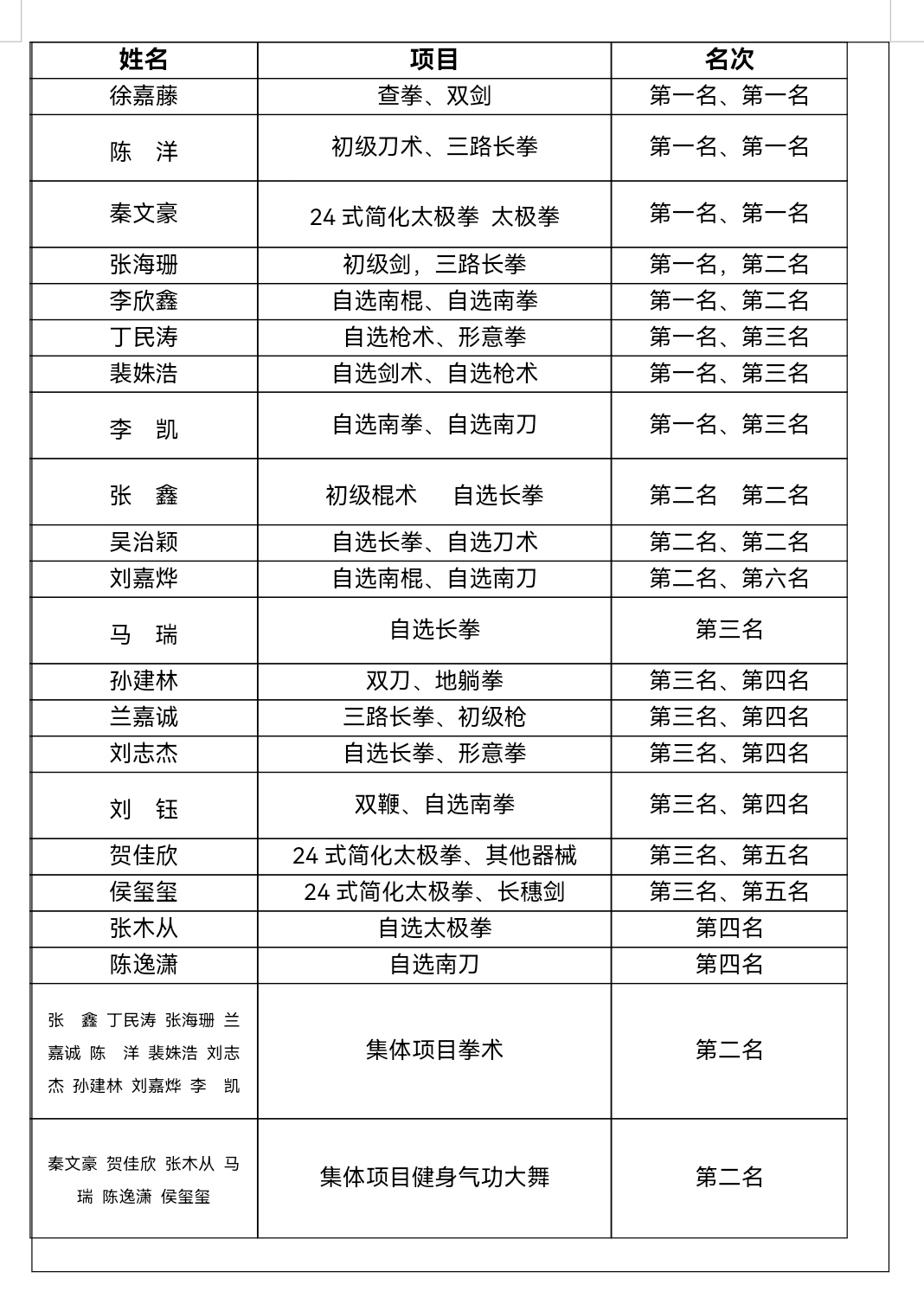 公司参赛运动员通过20余天的集中训练,在刘剑教练和金涛教练的指导下,不怕酷暑、不畏强手,奋力拼搏、团结协作,以饱满的精神状态和精湛的功夫技艺,展现了师大学子昂扬向上的精神风貌。刘剑老师和金涛老师被评为优秀教练员,丁民涛和秦文豪评为优秀运动员,为公司获得了荣誉。