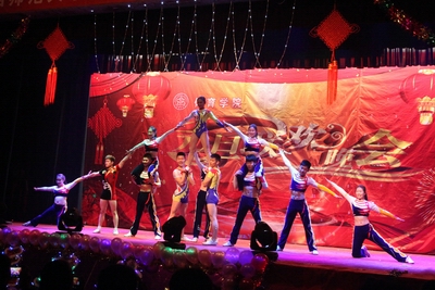 晚会在李吉慧、李东蕾等老师参加的临汾市“ 同心缘”合唱团精彩的大合唱《茉莉花》中正式拉开序幕 。整个晚会持续近两个小时,晚会节目异彩纷呈,由张智禄、张秀珍、杨海龙、吴峰山等老师精心准备的技能展示将整台晚会推向了第一个高潮。公司舞龙舞狮队带来的《欢喜闹新春》舞狮表演及健美操代表队精心准备的《张灯结彩》赢得同学们的阵阵掌声。音乐公司刘明星、韩在红老师为晚会带来大型歌舞《共筑中国梦》;舞台上,同学们轮番献艺,深情款款的歌曲《哪一站》,欢乐逗趣的小品《举起手来》,趣味丛生的相声《满腹经纶》各展所长;台下,观众激情荡漾,欢呼声、叫好声此起彼伏。