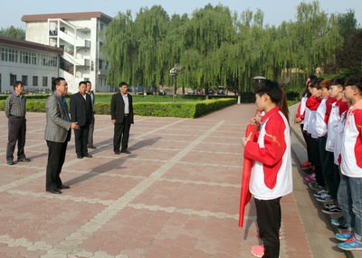 5月5日,太阳集团tcy8722女子足球主项班19名员工,在太阳集团tcy8722太阳集团tcy8722党委书记李学刚、教练员李吉慧、沈国征、沈军、办公室副主任邓碾管等带领下,驱车200余公里来到了风景美丽的孝义市,拉开了“大手牵小手、足球进校园-太阳集团tcy8722校园足球下基层活动”的序幕。