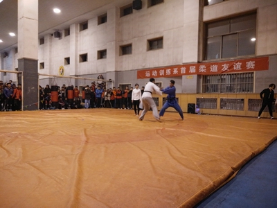 此次比赛是以淘汰赛和循环赛的赛制分别以轻量级、中量级和重量级来进行比赛。参赛选手为运动训练专业柔道专项同学共20人。开场前由运动训练系派出代表表演了柔道的基本技术动作。随后比赛正式开始,选手们迅速进入状态,观众们也是大大叫好。经过几场激烈的比赛后,最终袁露露获得了女子轻量级冠军,高树钦获得男子轻量级冠军,邢晋博获得男子中量级冠军,王军强获得男子重量级冠军。