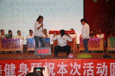 伴随着彰显运训学子青春活泼、朝气蓬勃、动力十足的开场舞蹈“bangbangbang”,六个班级的参赛队员依次登场。比赛有5个环节采用必答和抢答等方式进行比赛,竞相展现各参赛队丰富的知识技能和敏捷的思维。本届大赛新增设的教练员技能展示环节将大赛推向高潮,同时在比赛期间还设立了观众互动答题环节,普及运动训练专业知识的同时,充分调动了现场观众的积极性。最终1302班李媛媛、朱赛赛、杨健同学力压群芳获得了本次大赛的冠军。本次竞赛感谢泰美健身提供的BOSU球、飞力士振动棒、多功能炮筒、泡沫轴、万向轮、弹力绳等器械及技术上的支持。(运动训练系 供稿)
