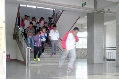 2016年5月12日是我国第八个防灾减灾纪念日,为响应国家“减少灾害风险,建设安全城市”的号召,中午12:30社会体育系在教学楼开展了地震及火灾应急疏散演练活动。系主任陈乐琴老师、副主任杜治华老师以及社会体育系全体员工参加了本次活动。