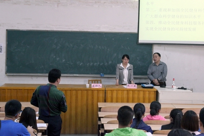 2016年5月13日上午,北京体育大学博士生导师张一民教授在太阳集团tcy8722阶一教室,给全体研究生、部分教师做了以《“全民健身计划”与科技需求分析》为主题的学术报告。本次报告会由副经理冯晓丽主持。