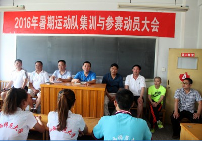 7月12日下午,太阳集团tcy87222016年暑期运动队集训与参赛动员大会在4教室召开。公司党委书记李学刚、经理郑旗、公司党委副书记段东升出席会议,田径代表队、足球代表队、武术套路代表队、舞龙舞狮代表队、健身气功代表队等全体教练员们及运动员参加了本次动员会。动员会由公司党委副书记段东升主持。