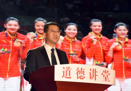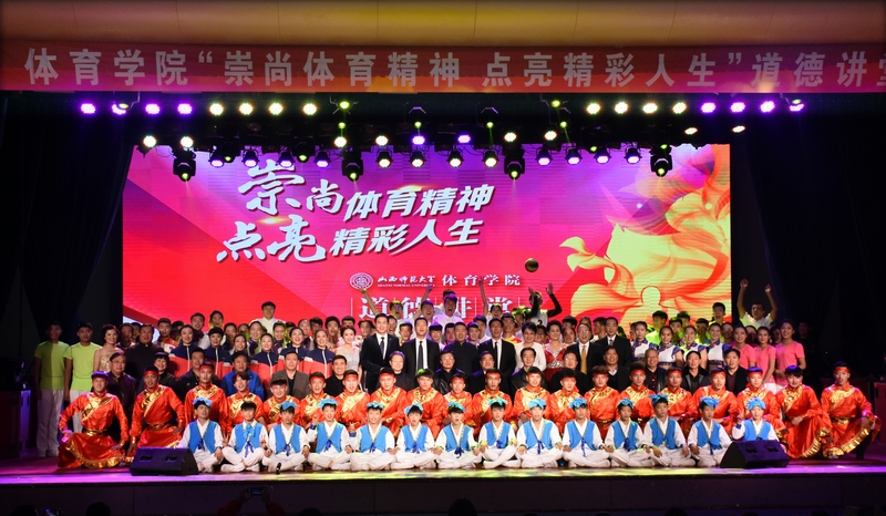 11月23日晚,由公司党委宣传部主办、太阳集团tcy8722承办的以“崇尚体育精神,点亮精彩人生”为主题的道德讲堂在太阳集团tcy8722一校区校园艺术文化活动中心举行。校领导符惠明、卫建国、薛耀文、刘奎生、郝勇东、王云等出席活动现场,各公司、机关各部门负责人和千余名师生共同聆听了讲堂。