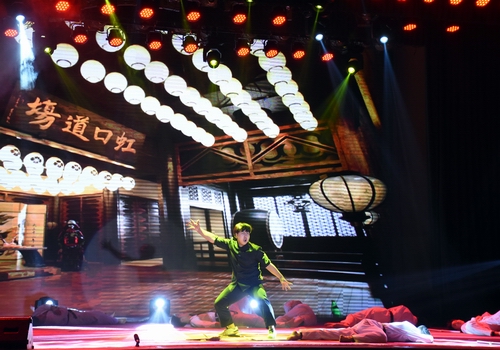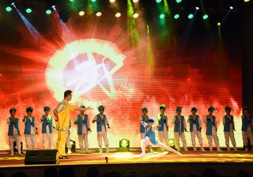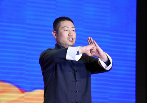 在第三篇章中,权黎明老师讲到,“抱拳礼”是中华民族特有的传统礼仪,武术象征着中华民族自强不息的精神和民族荣耀,其内在的热血、励志、激情,不畏强敌、勇于挑战的精神非常之正能量,与中国崛起的大国形象相符合。我们应弘扬尚武精神,崇尚中华武德,凝聚中国力量,努力实现中华民族伟大复兴的中国梦。武术表演《精武英雄》向世界宣告“中国人不是东亚病夫”;《少年中国说》展现了中国少年的非凡风姿,将少年中国强的画面完全呈现在观众面前。