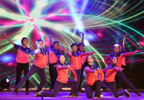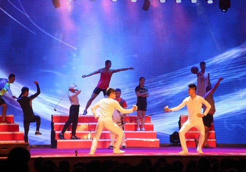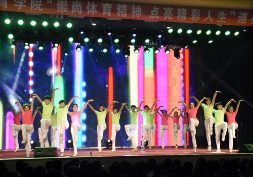 在第二篇章中,张伟老师讲到,运动是体育的灵魂,也是一切生命的源泉,运动之美无处不在。其包含了肌肤、精神、音乐、图画、健康等方面的美丽。运动之美,展示着体育人良好的道德修养和崇高的道德风尚;运动之美,彰显着体育人爱岗敬业和诚实守信的道德操守;运动之美,体现着体育人强烈的爱国情感和激昂的报国之心。《力与美》将各种体育运动融于表演中,将体育人的力量之美展现得淋漓尽致;健美操表演《炫舞Aerobic》将健美操的“健康之美、力量之美、节奏之美、活力之美”激情完美的展现出来。