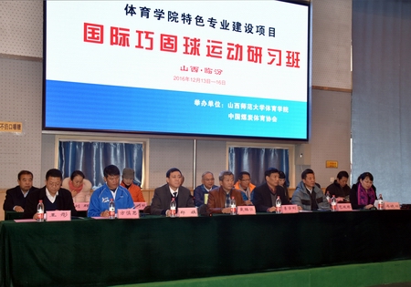 为了加强公司特色专业项目建设,进一步开发体育课程资源,2016年12月13日-16日,“国际巧固球运动研习班”在公司篮球综合馆举办。中国煤炭体育协会主席戴璐强,副主席兼秘书长包双林,国际巧固球总会秘书长、国际巧固球A级教练兼教练班导师方慎思,台湾巧固球协会常务理事兼裁判长黄春华,台湾巧固球协会监事、国际级A级裁判陈原弘,澳门君子球(巧固球)协会秘书长、国际级裁判徐东东,巧固球国际级裁判潘荣庆、李吉慧、陈巧秋、刘群、李燕,院领导李学刚、郑旗、王彤、冯晓丽出席了开班仪式,仪式由副经理冯晓丽主持。太原、大同、临汾部分高校、中小学教师,校教育创新实验区(晋城)的领导和教师以及公司球类项目教师、2016级硕士研究生、体育教育系三年级员工参加了研习班。
