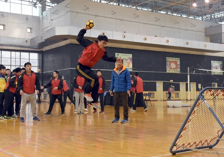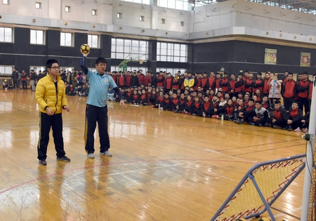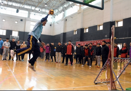 巧固球运动是盛行于欧美、台湾等地区,由瑞士生物学家布兰德博士(Prof.Hermann Brandt)创造,主要联合了篮球、排球、壁网球和手球等项目特点,以维持健康而正当的竞赛氛围下,做不侵犯别人身体活动和礼让的态度为宗旨的运动。公司举办此次研习班,旨在提升公司特色专业项目建设水平,在山西省引进和推广巧固球运动。(研究生教育办公室/文 邓碾管/摄)