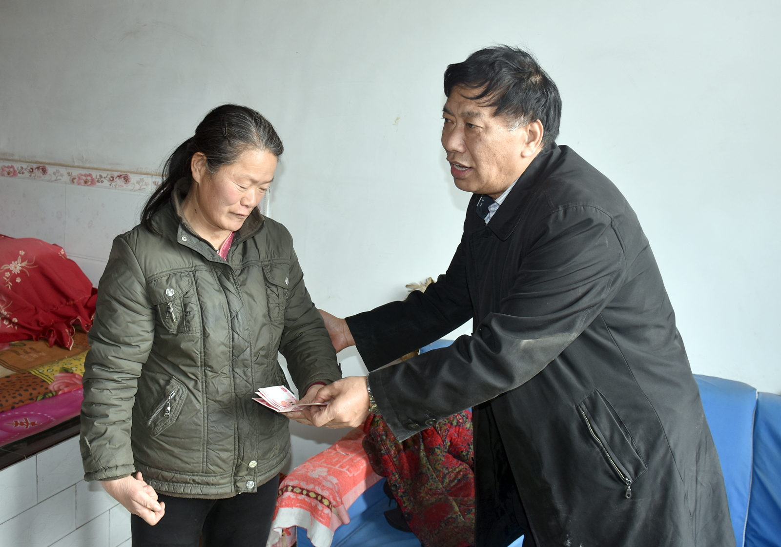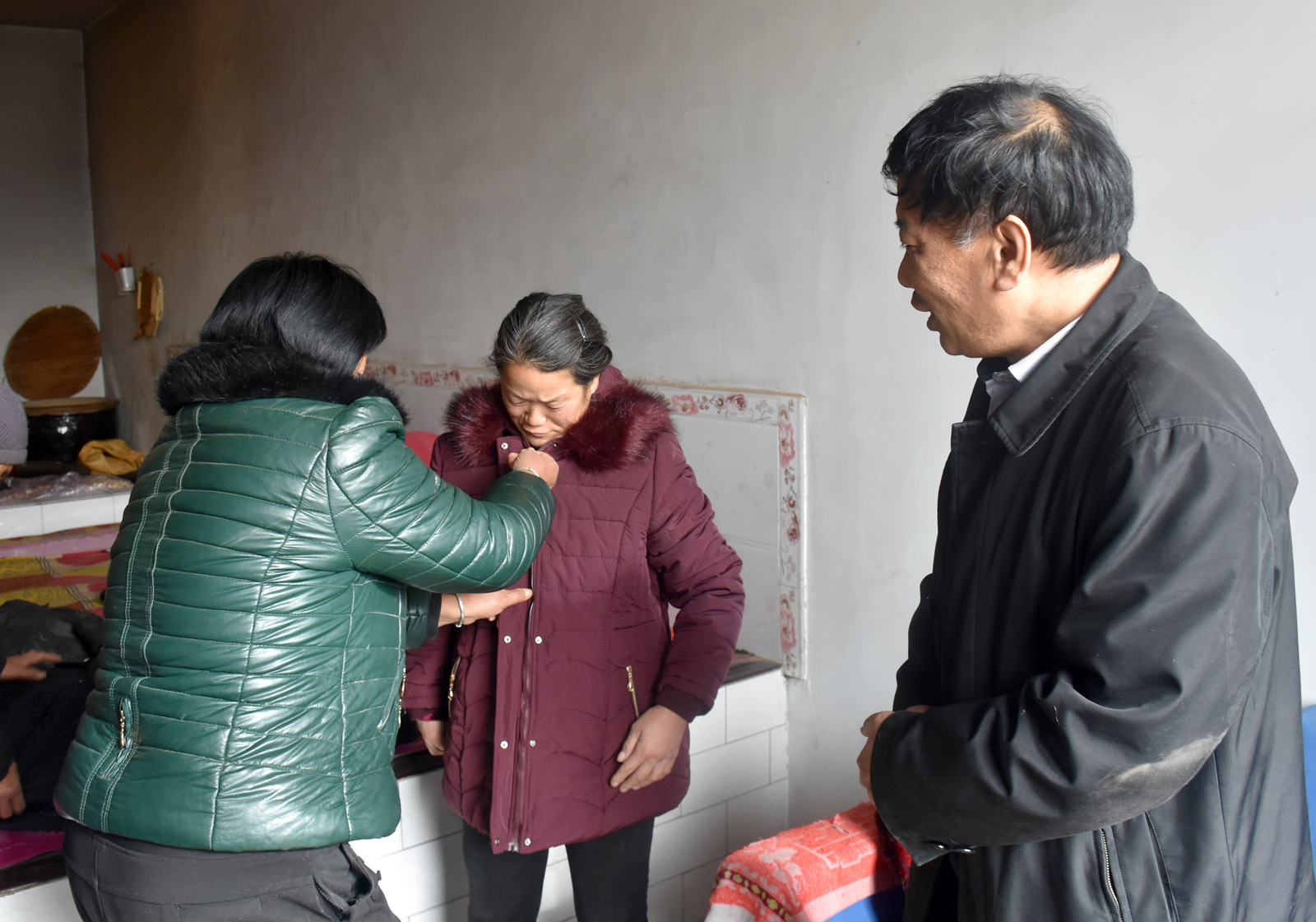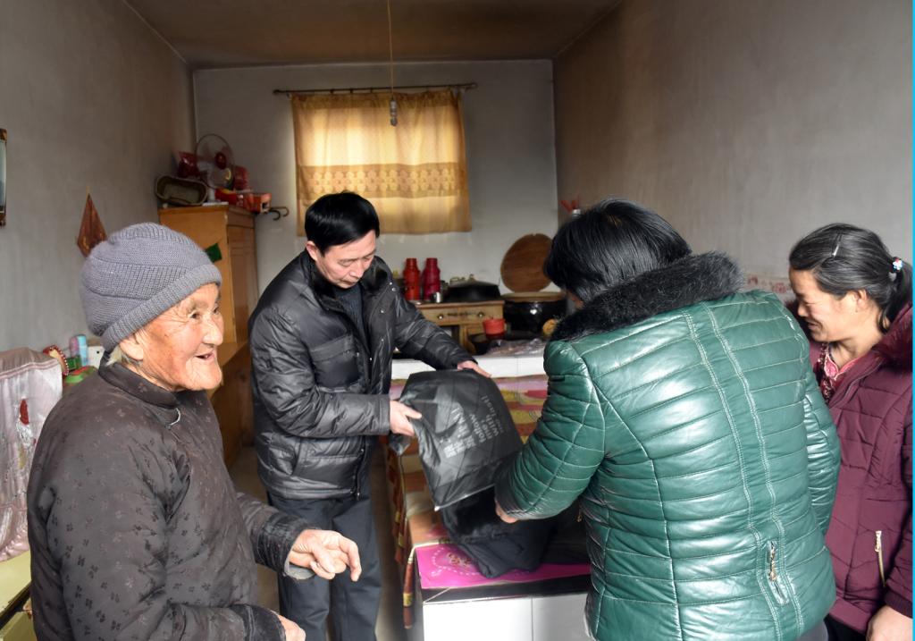 2017年1月10日上午,太阳集团tcy8722党委书记李学刚、院工会主席赵道卿、院办公室副主任邓碾管一行三人,来到吉县车城乡桃村结对帮扶户程彦忠家进行走访慰问。带着太阳集团tcy8722全体教职工的牵挂与爱心,送去了米、面、油和过年服装,并送上了500元慰问金。程彦忠一家有三口人,本人智障,媳妇残疾,还有一个80多岁的老母亲。在其家中,李学刚书记详细询问了他们一年来的生产、生活情况和冬季取暖情况,与老人促膝长谈,了解他们的身体状况,祝福他们好好生活,要相信党、相信组织,过一个美满的春节。(院办/文 邓碾管/摄)