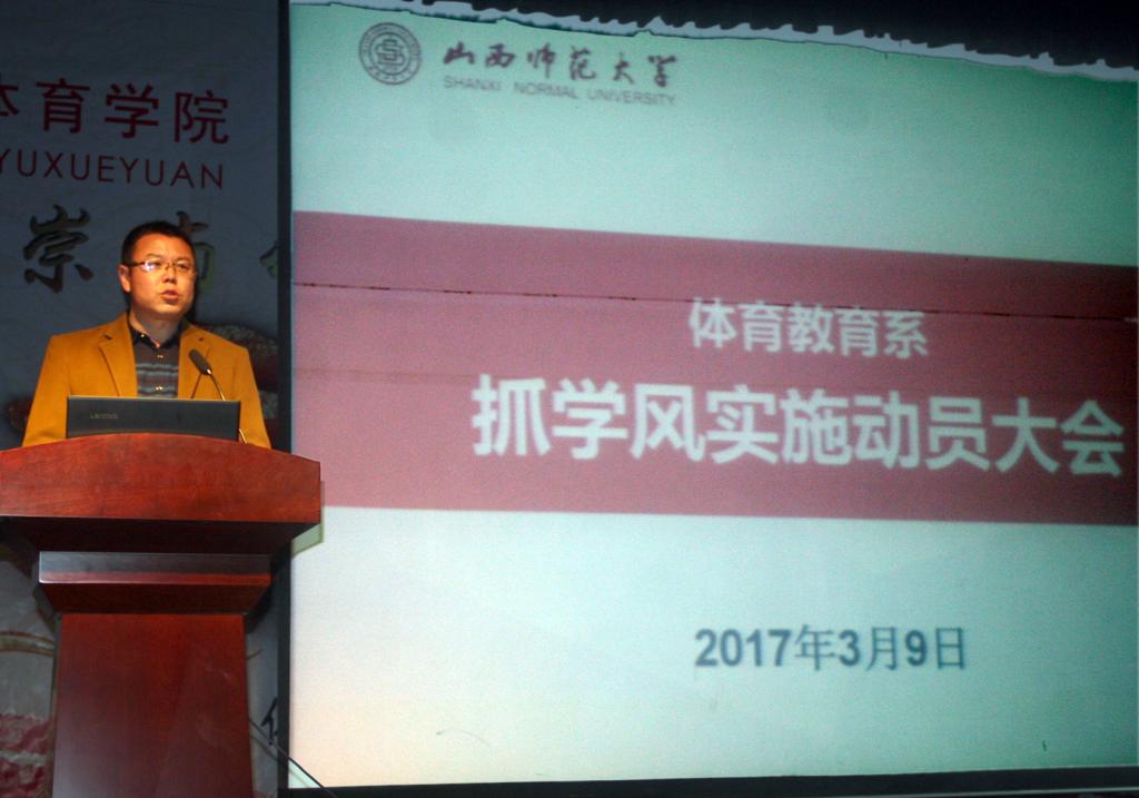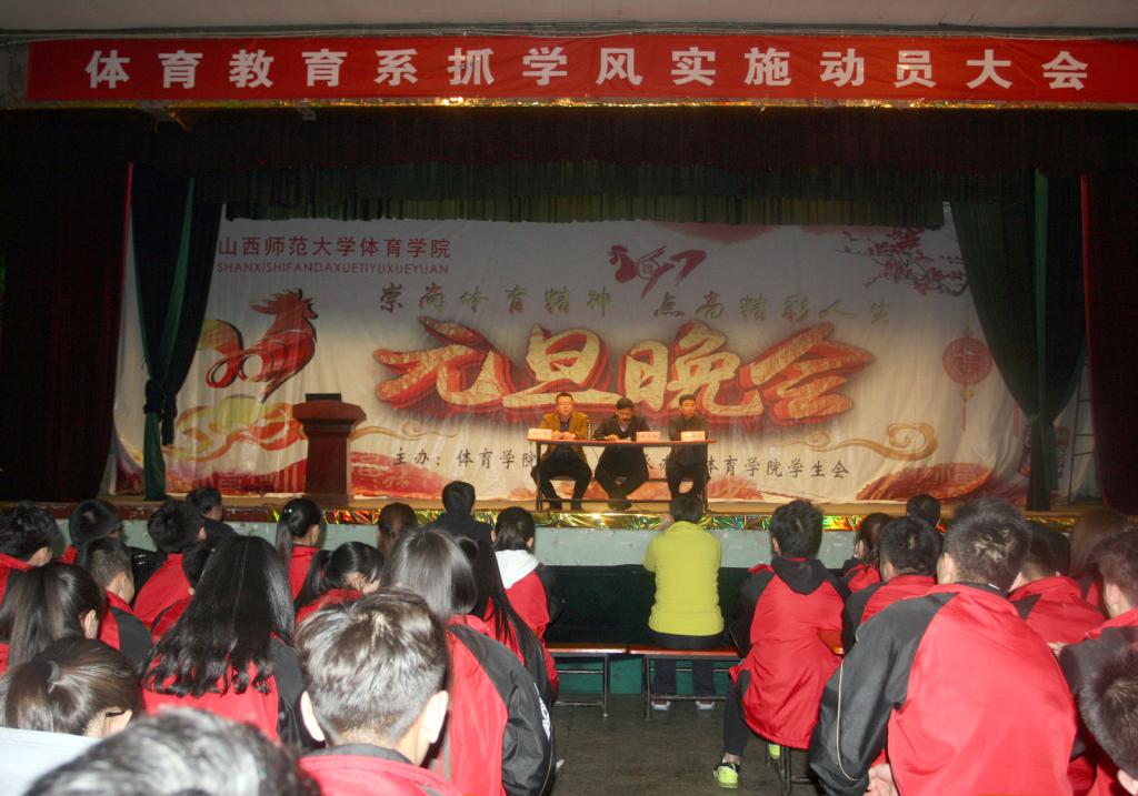 2017年3月9日晚7点半,太阳集团tcy8722“体育教育系抓学风实施动员大会”在院礼堂隆重召开。参加本次大会的有:公司党委书记李学刚、体育教育系主任杨海龙、副主任张杰以及各班辅导员和全体员工。