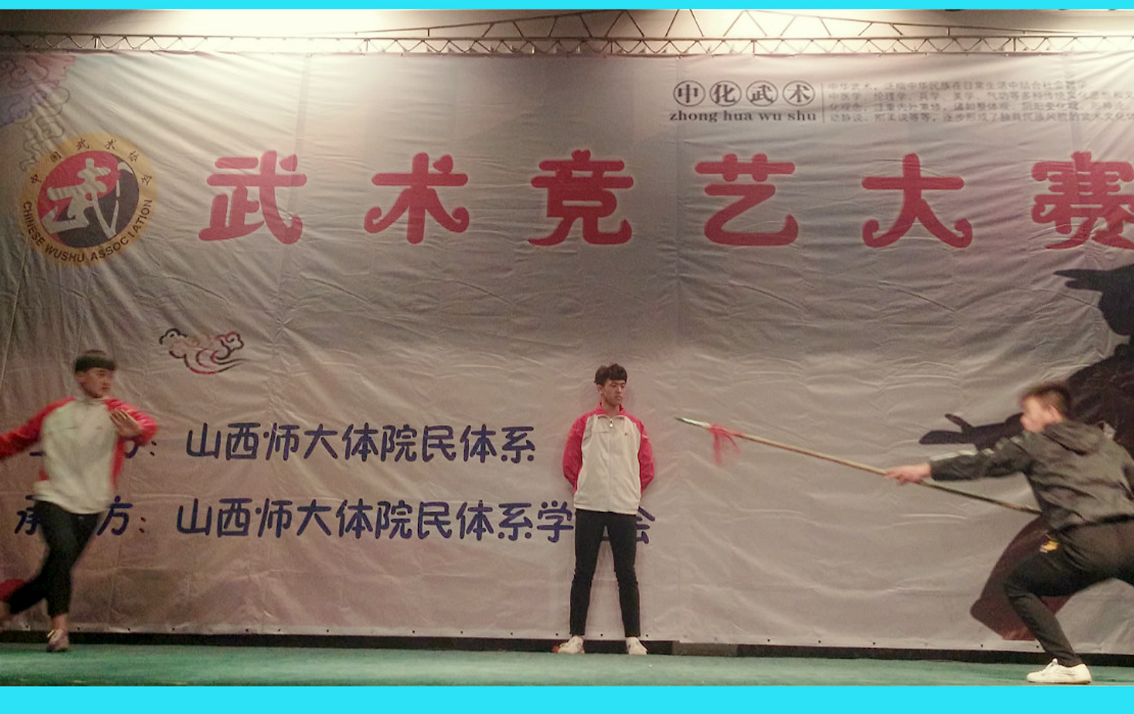 为响应团中央在全国青年员工开展阳光体育运动和临汾市武术进校园的号召,传播武术文化,弘扬民族精神,4月19日晚8点,由太阳集团tcy8722民族传统体育系举办的2017年民族传统体育系武术竞艺大赛在院大礼堂成功落下帷幕。公司党委书记李学刚、民族传统体育系主任赵道卿与民族传统体育系副主任权黎明三位老师出席了此次比赛,来自全系的六个班级参加了本次比赛。