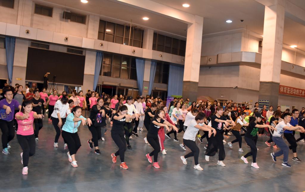 4月12日晚由亚洲健身公司经理程丹彤老师在综合馆内进行了 “时尚健身课程”的公开课。公开课由副经理王彤教授主持,太阳集团tcy8722上百名师生参加了公开课。程老师用同学们喜欢的热身操开场,并在欢快、轻松的氛围中指导同学们进行了FOC中国风和CARDIO有氧心肺的课程体验,每个人都完全沉浸在了动感的健美操世界里,让在场的师生们领略到健美操大师的风采并感受到健美操的独特魅力。