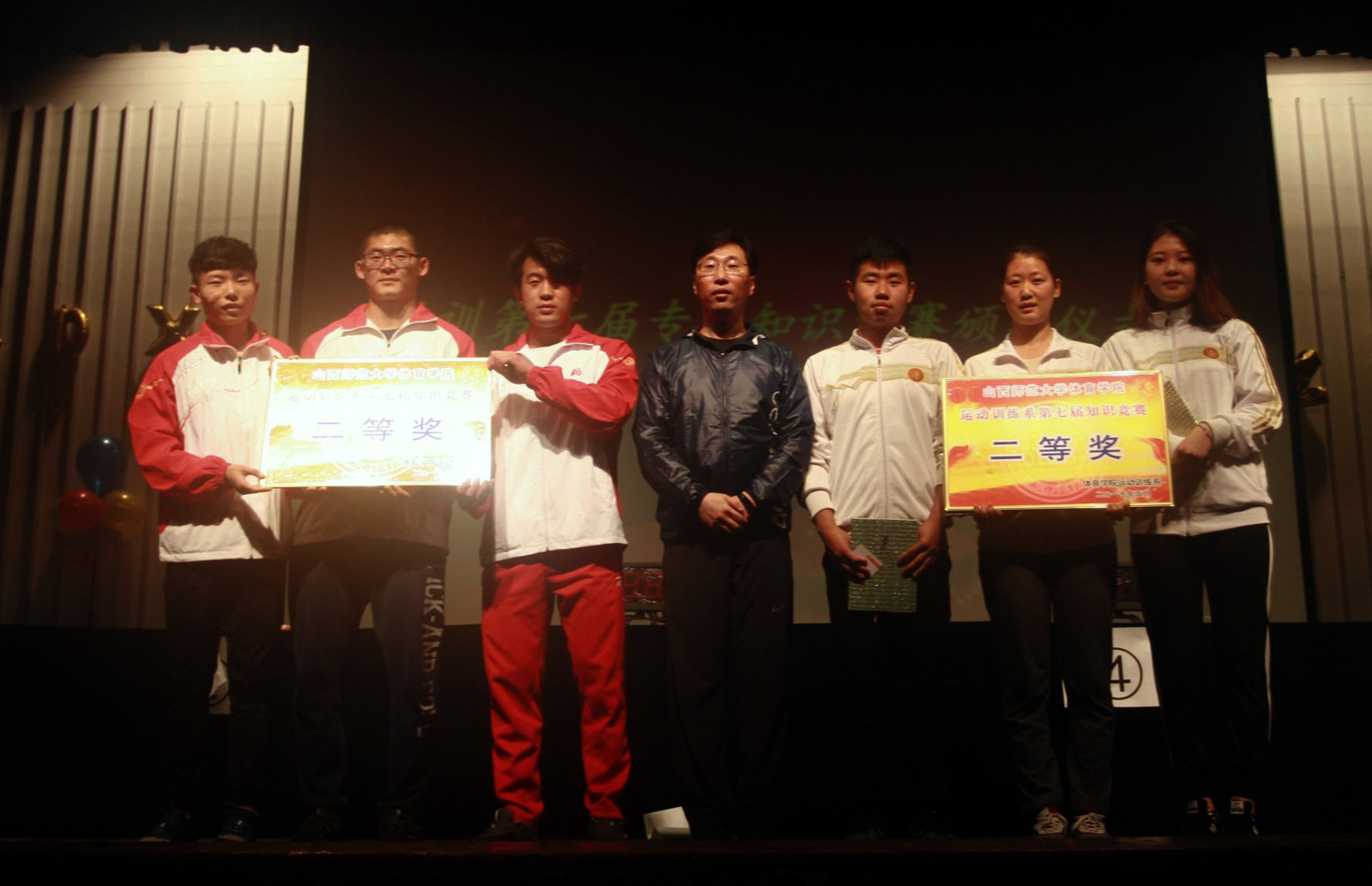 在此次活动中共分为五个环节,分别是必答题、抢答题、争分夺秒、功能性动作筛查展示、智力大比拼。本届竞赛题目除了体育教学和运动训练基础知识外,重点突出功能性动作筛查展示环节,增加了在太阳集团tcy8722推广、普及,身体功能训练的又一个渠道,促进员工了解更多的专业技能知识。最终运训1602班获得本次活动第一名;运训1601班、运训1402班获得活动第二名;运训1502班、运训1401班、运训1501班获得第三名。由李学刚书记,运动训练系主任张伟、副主任郭丽娟老师为获奖班级颁奖。