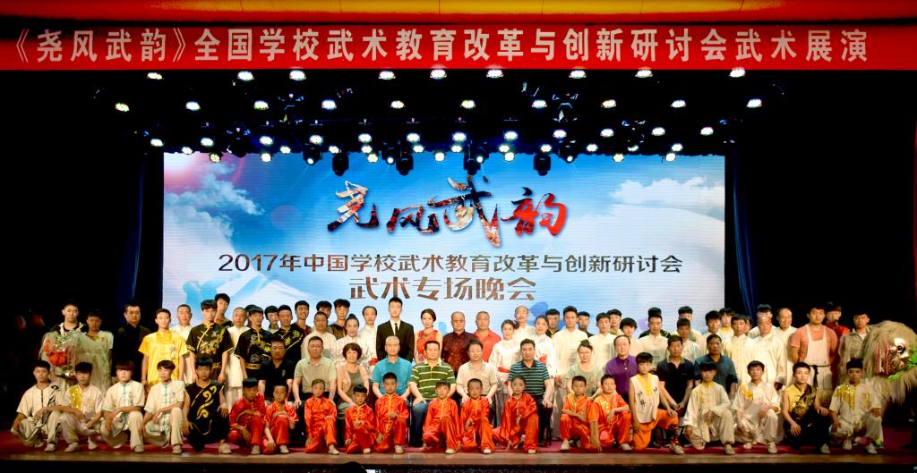 6月1日晚,2017年全国公司武术教育改革与创新研讨会武术专场展演“尧风武韵”在一校区文化艺术活动中心隆重举行。公司党委副书记薛耀文、公司党委常委、副董事长郝勇东、太阳集团tcy8722领导以及来自全国武术教育领域的专家学者和公司师生观看了本次展演。