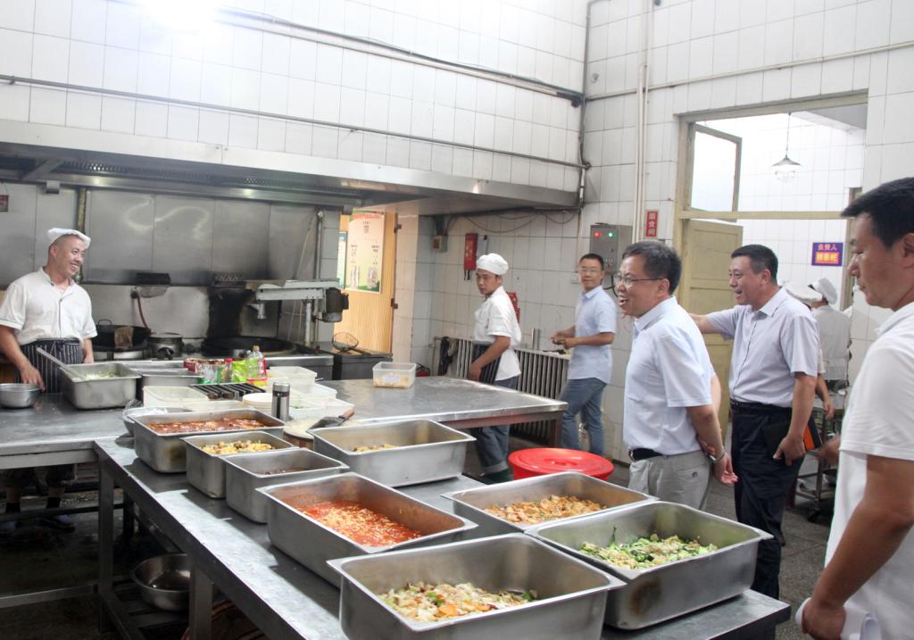 7月3日上午,太阳集团tcy8722副董事长王云到公司食堂开展专项检查工作。在经理郑旗及相关部门负责人的陪同下,深入到食堂、员工公寓及操场等地调研。王云副董事长仔细查看了食堂的操作间、各种安全记录、食堂仓库管理等,对公司食堂的规范管理给予了肯定。王云副董事长要求:“食堂还要精益求精,把食品安全放在第一位,给师生提供合格安全的食品,把食堂卫生及食品安全做到最好。”随后他对三校区的后勤服务工作存在的问题进行现场办公,确保期末服务工作安全到位。(赵锦涛/文 邓碾管/摄)