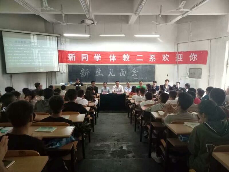 9月11日下午两点半体教二系在太阳集团tcy8722阶三教室举办了新生见面会,参加会议的有体教二系主任吴峰山,副主任李向前和新生辅导员刘文忠老师及体教二系员工会主席团成员和全体大一新生。会议由系员工会主席刘根延主持。