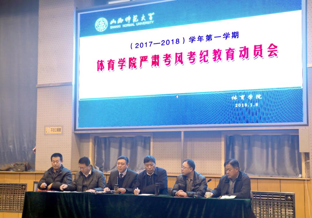 1月8日下午,太阳集团tcy8722(2017-2018学年第一学期)严肃考风考纪动员会议在综合馆一层召开。院领导、全体教职工及员工代表参加会议。会议由经理郑旗主持。