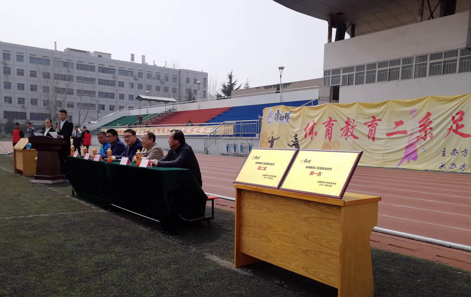 3月21日,由体育教育二系举办的首届足球文化节活动在太阳集团tcy8722足球场拉开帷幕。参加本次开幕式活动的有系主任吴峰山、副主任李向前、各班辅导员老师及体教二系全体员工。