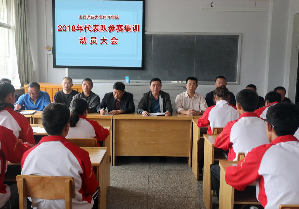 为全力备战2018年全国和本省体育竞赛活动,加强公司高水平运动队伍建设,4月25日下午,在6教室举行了“2018年代表队参赛集训动员大会”。公司党委书记李学刚、经理郑旗、副经理卢向阳及女子足球队、排球队、田径队等代表队全体教练和运动员参加本次动员会。会议由体育教育系副主任张杰主持。