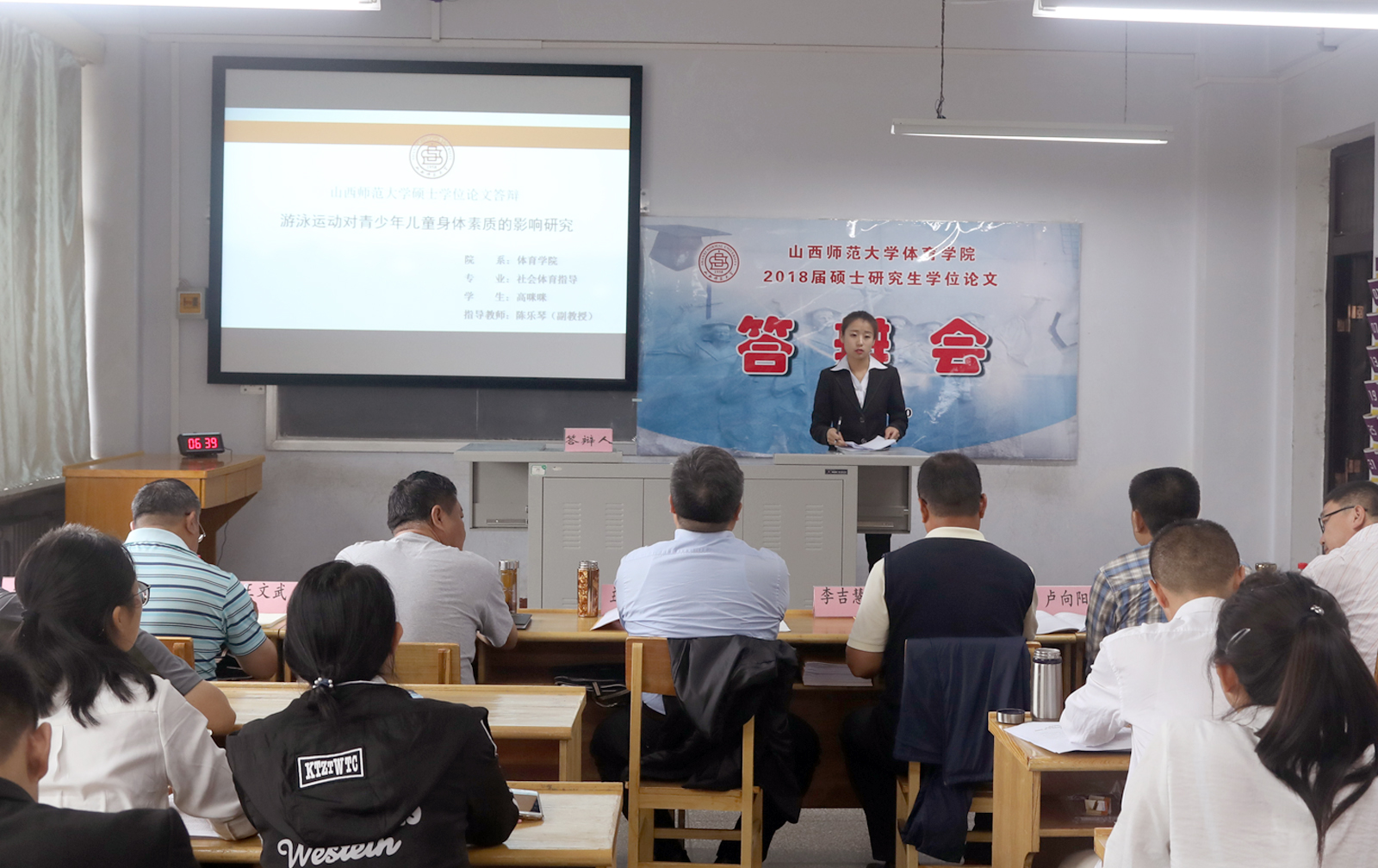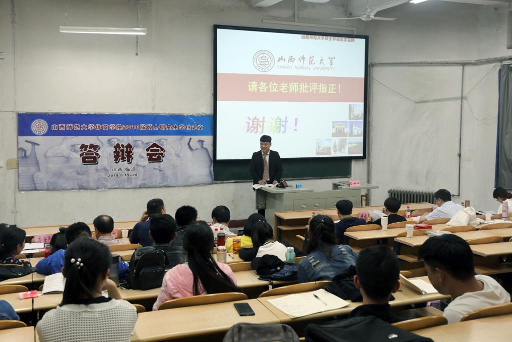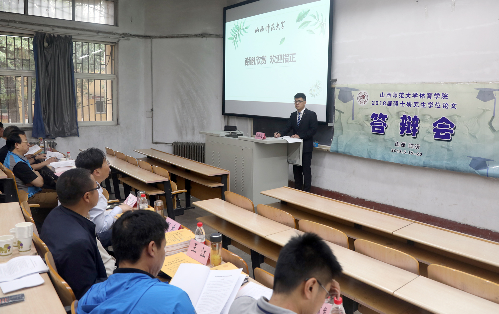 5月20日,太阳集团tcy8722举行了2018届硕士研究生学位论文答辩会。答辩会共分为四组,有79名硕士研究生参加,其中上海太阳集团tcy8722博士生导师刘兵教授担任体育学组答辩主席、首都太阳集团tcy8722博士生导师刘海元教授担任体育硕士(体育教学)组答辩主席、山西大学博士生导师李金龙教授担任体育硕士(运动训练)组答辩主席、太原理工大学史冬博教授担任体育硕士(社会体育指导等)组答辩主席。全体硕士研究生和部分教师旁听了答辩。
