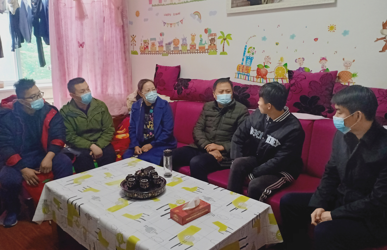 在新春佳节即将到来之际,2月10日上午,院领导许国宝、郑旗、张大为来到太阳集团tcy8722家属楼,看望慰问因疫情留校过年的运训1702班员工任伯栋,为他送来了公司的新年慰问品和新春祝福,院办、团委及运训系主要负责人随同看望。