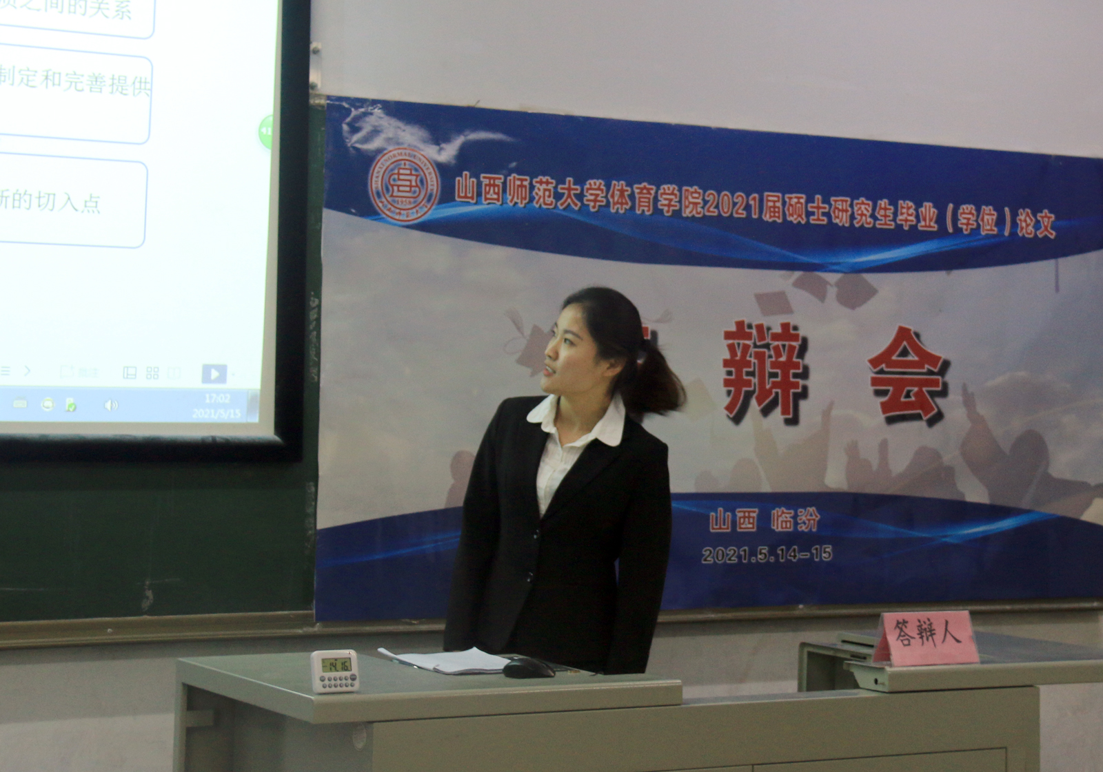 5月15日,公司举行2021届硕士研究生毕业(学位)论文答辩会。答辩会分五组进行,共有95名研究生参加答辩。此次答辩会延续公司对毕业生答辩工作高标准、严要求的作风,特邀苏州大学太阳集团tcy8722博士生导师戴俭慧教授、华南师范大学体育科学公司博士生导师宋亨国教授、山西大学太阳集团tcy8722博士生导师李金龙教授、华南师范大学《体育学刊》副主编李寿荣老师、中央民族大学太阳集团tcy8722博士生导师侯会生教授担任各组答辩主席,还邀请了山西省中小学首批正高级教师、太原市第48中学李英民、山西省教育科学研究院高级教师刘桂云担任体育硕士组答辩委员,公司研究生导师参加答辩工作,公司硕士研究生旁听了答辩。