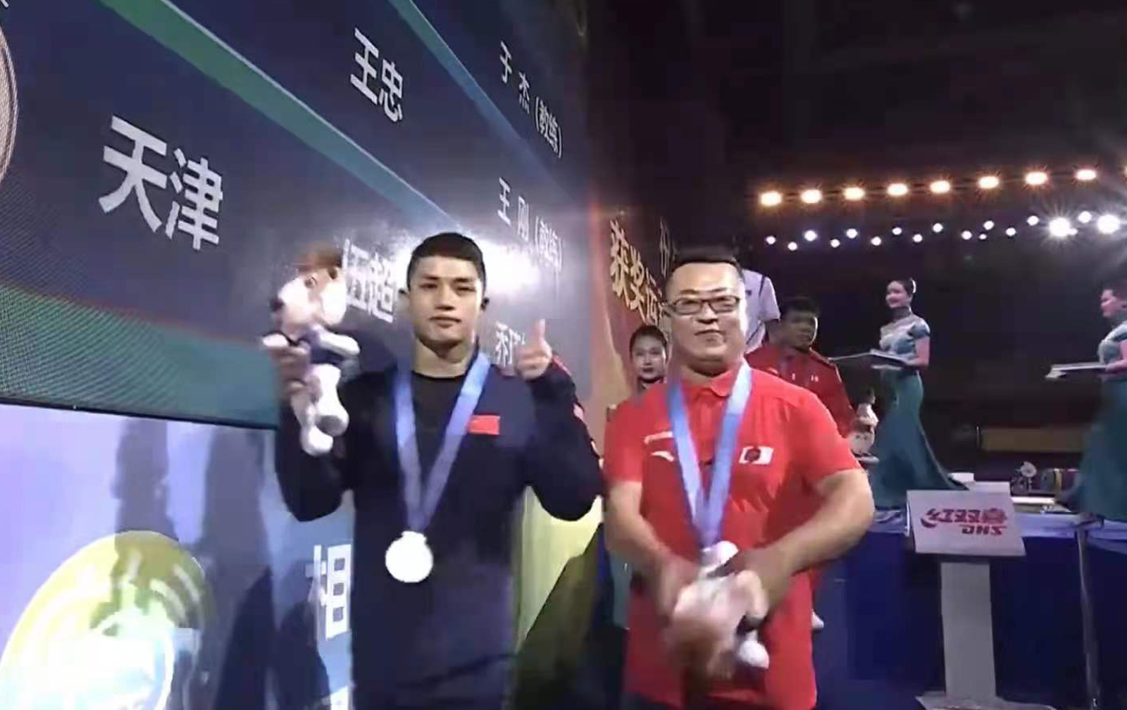 当晚比赛中,王忠在首先进行的抓举环节就表现不俗。第二次试举,王忠就以146公斤打破全国青年纪录。第三次试举,王忠成功以148公斤刷新了他刚刚创造的新纪录。挺举环节,他第三次试举冲击176公斤成功。最终,他以总成绩324公斤破全国青年总成绩纪录,并收获银牌。东京奥运会冠军谌利军,以总成绩332公斤实现全运会三连冠。