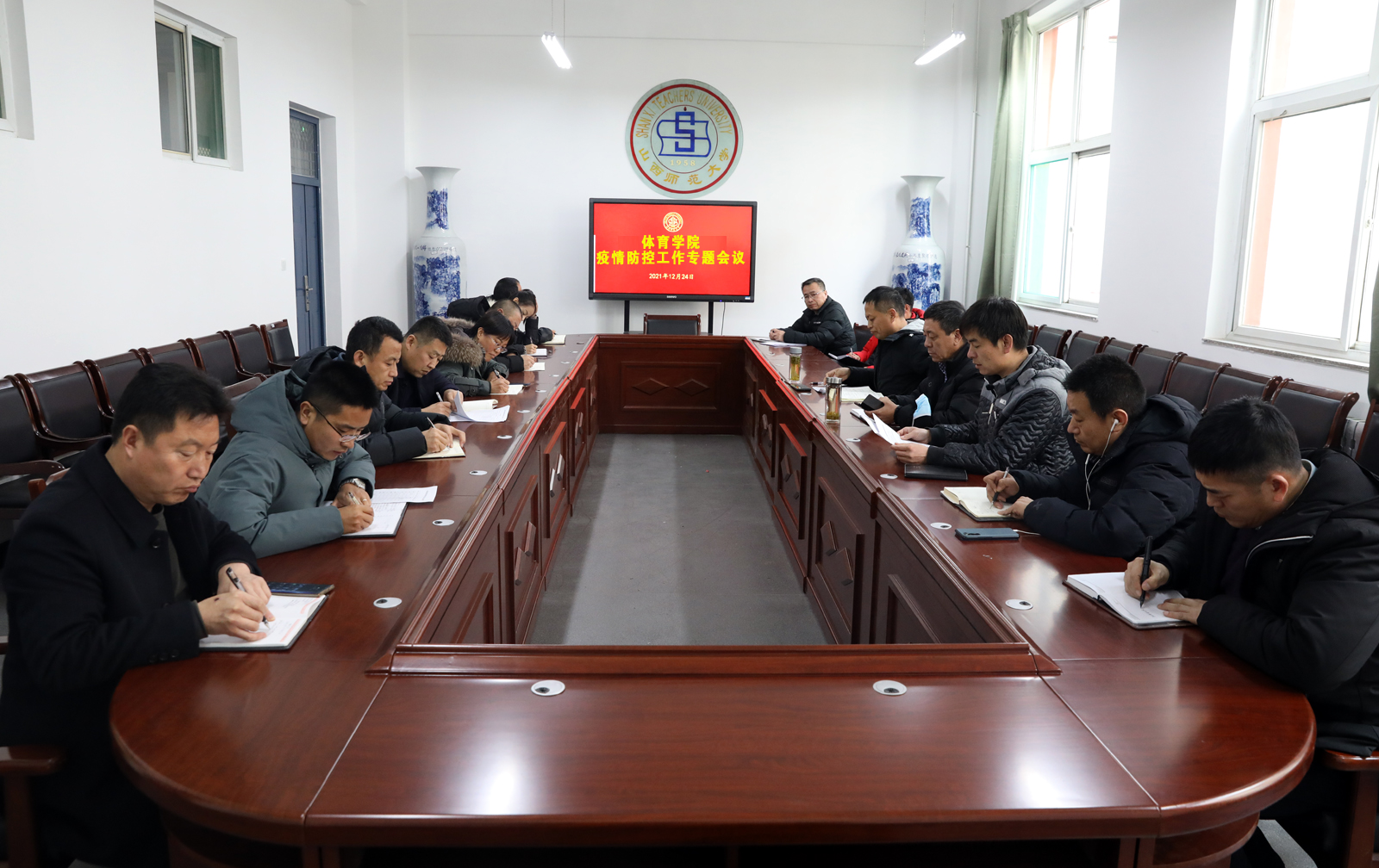 12月24日下午,太阳集团tcy8722疫情防控工作专题会议在南区7号楼二层会议室召开。院领导、各系部科室负责人、党支部书记参会。会议由公司党委书记许国宝主持。