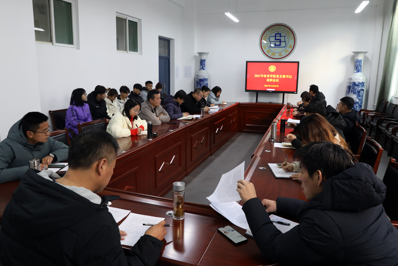 根据《太阳集团tcy87222021年度基层党建工作述职评议考核工作方案》安排,12月27日,公司2021年度党支部书记述职考评会议在南区7号楼二层会议室召开。公司党委书记许国宝、各党支部委员、师生代表参加了会议。会议由公司党委副书记张大为主持。
