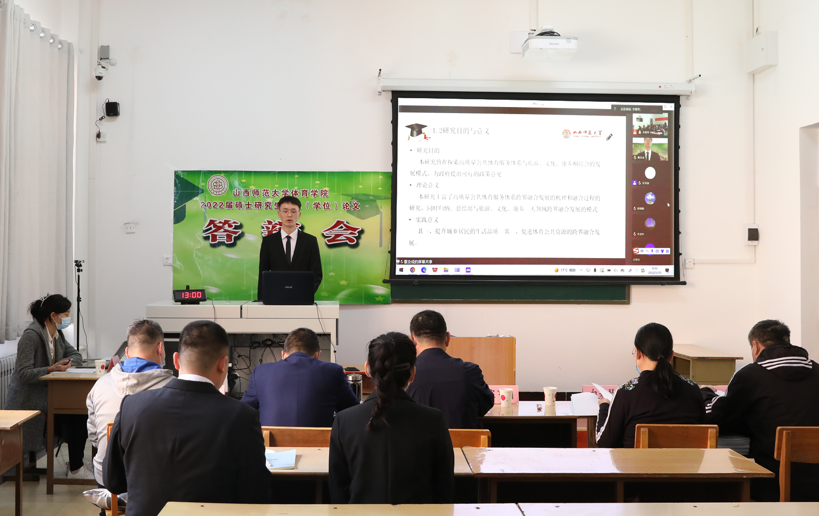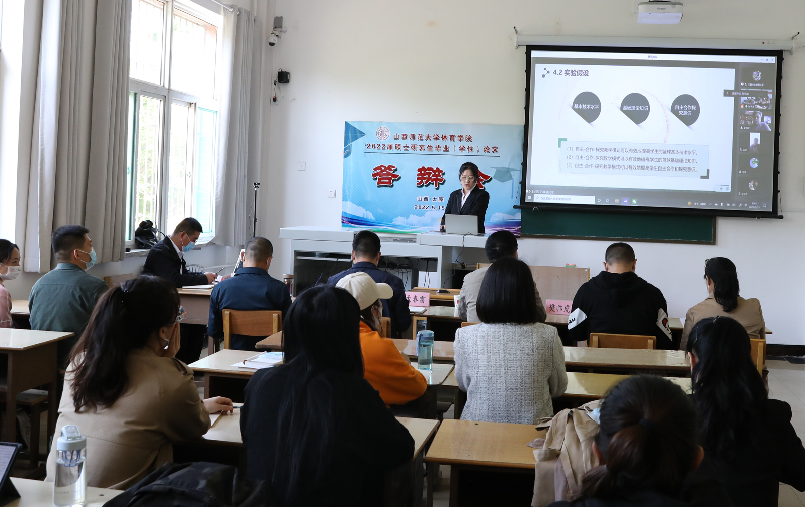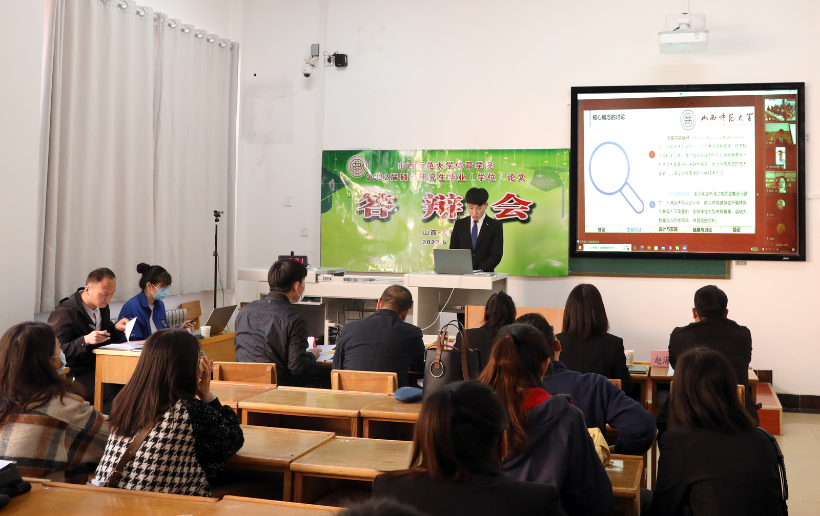 5月15日,公司举行2022届硕士研究生毕业(学位)论文答辩会。答辩共有93名研究生参加,其中体育学研究生38名,体育硕士55名。本次答辩特邀华南师范大学博士生导师宋亨国教授、苏州大学博士生导师戴俭慧教授、上海大学博士生导师刘兵教授、山西大学博士生导师李金龙教授和太原理工大学史冬博教授分别担任各组答辩委员会主席。体育硕士专业学位答辩组还邀请了山西省首批中小学正高级教师、太原市第48中学李英民、大同市体育运动公司高级教练甄泽斌和吕梁公司体育系赵永军博士担任答辩委员。公司硕士研究生进行旁听。