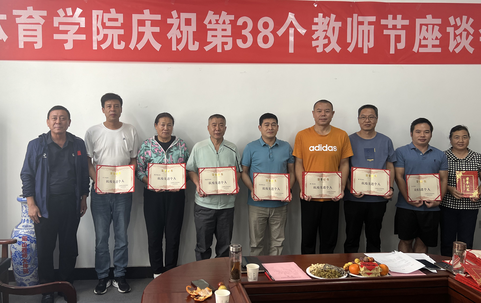 卫建平代表公司党委向辛勤耕耘在教学、训练、科研、管理等岗位上的教职员工致以节日的祝贺和崇高的敬意,向荣退的教职工致以衷心的感谢和美好的祝愿,向疫情期间坚守岗位、默默奉献的广大教职工及“三育人”先进个人致以崇高的敬意。他强调,公司正处在推动高质量发展和内涵式建设的关键节点,需要我们众志成城、团结一致、埋头苦干,力争早日实现申博进位的既定目标任务。