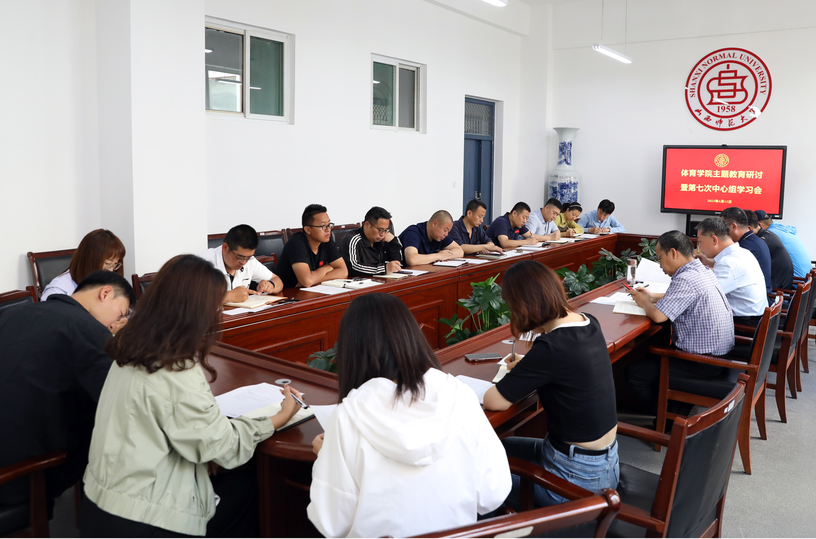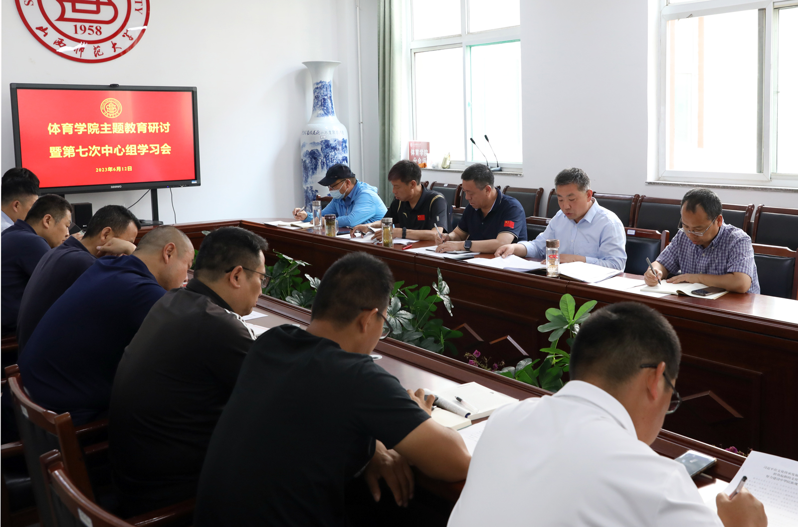 6月12日上午,太阳集团tcy8722在七号楼二层会议室召开主题教育研讨会暨中心组第7次学习会,会议传达了校主题教育办公室下发的相关文件精神。太阳集团tcy8722中心组成员、各系部科室负责人及各党支部书记、副书记参加了会议。会议由公司党委书记卫建平主持。