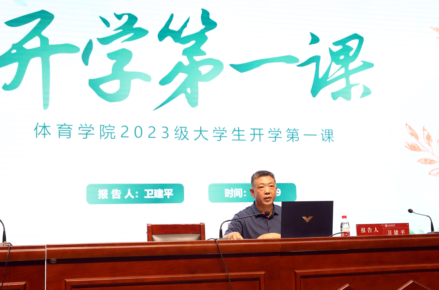 公司党委书记卫建平致欢迎辞。他对2023级本科新生的到来表示热烈欢迎,希望同学们在大学四年中能够珍惜时光,练就过硬本领;学会沟通,提高个人修养;学会做人,培养家国情怀;学会做事,提高综合素养。把自己的学业与体育梦、中国梦联系在一起,积极培育和践行社会主义核心价值观,做好职业规划,为体育强国建设贡献力量。