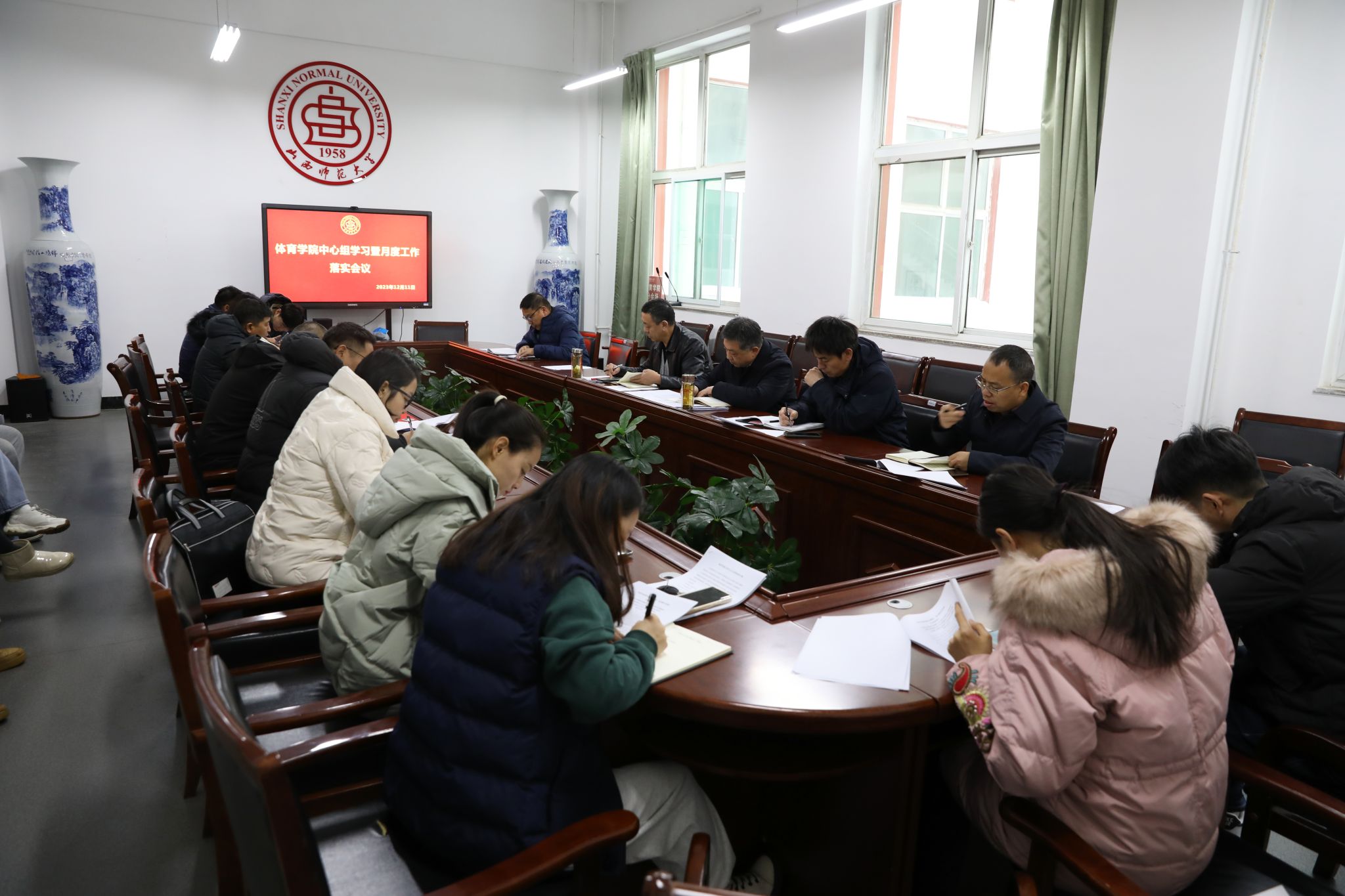 12月11日上午,太阳集团tcy8722在7号楼二层东会议室召开第13次中心组学习暨月度工作落实会议。太阳集团tcy8722党委中心组成员、各系部科室主任、副主任、各党支部书记、副书记、专职辅导员参加会议,会议由公司党委书记卫建平主持。