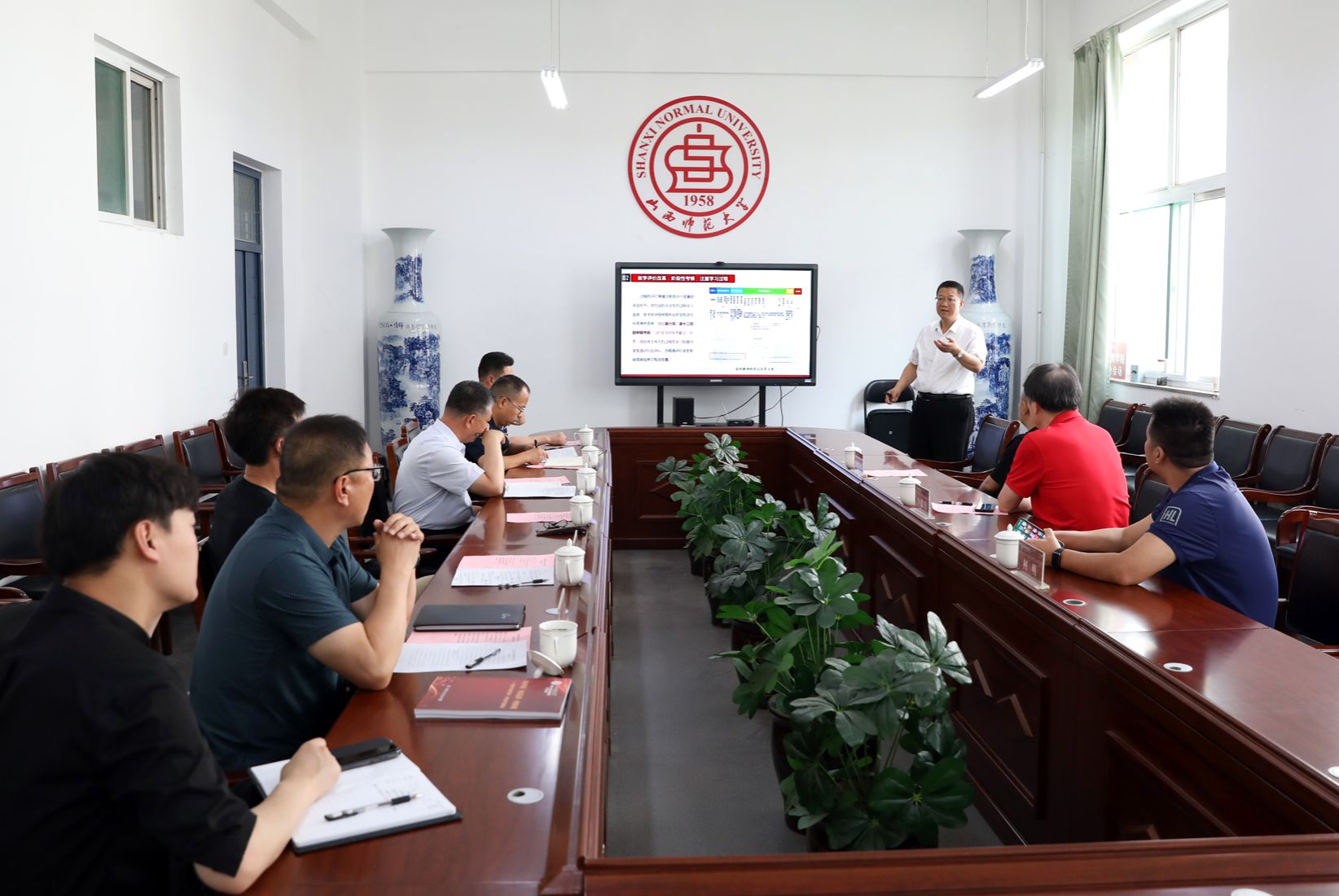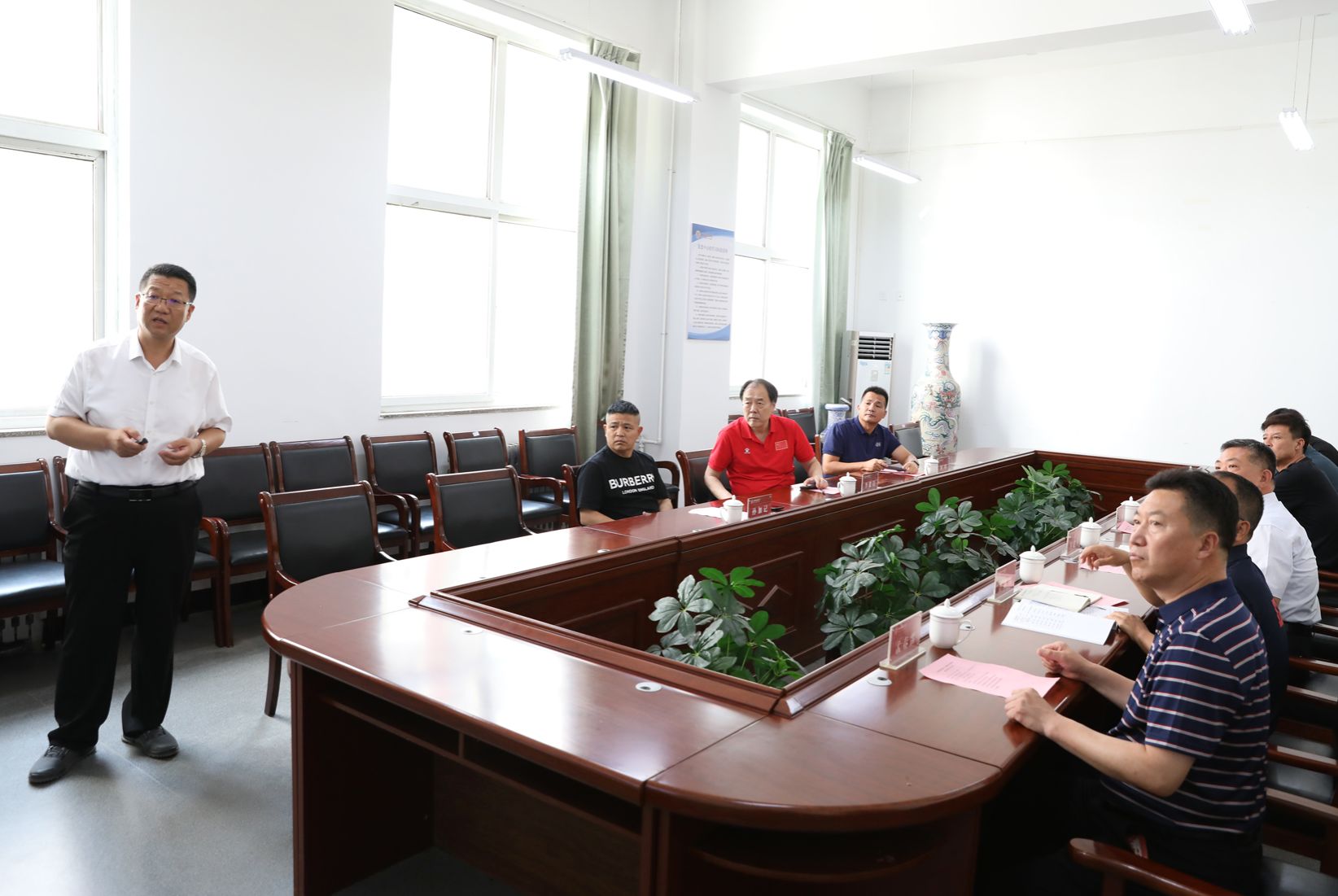 卫建平首先对李毅钧经理一行来访表达了热烈欢迎,并介绍了公司现任领导班子成员情况。王彤详细介绍了公司发展的历史沿革、教学改革、团队建设、竞赛训练、员工管理、社会服务等方面的亮点工作及迁建太原以来面临的机遇与挑战;王江、李向前、李海伟分别对公司体质测试及群体竞赛工作、教学管理工作和团队建设情况进行了详细的介绍。